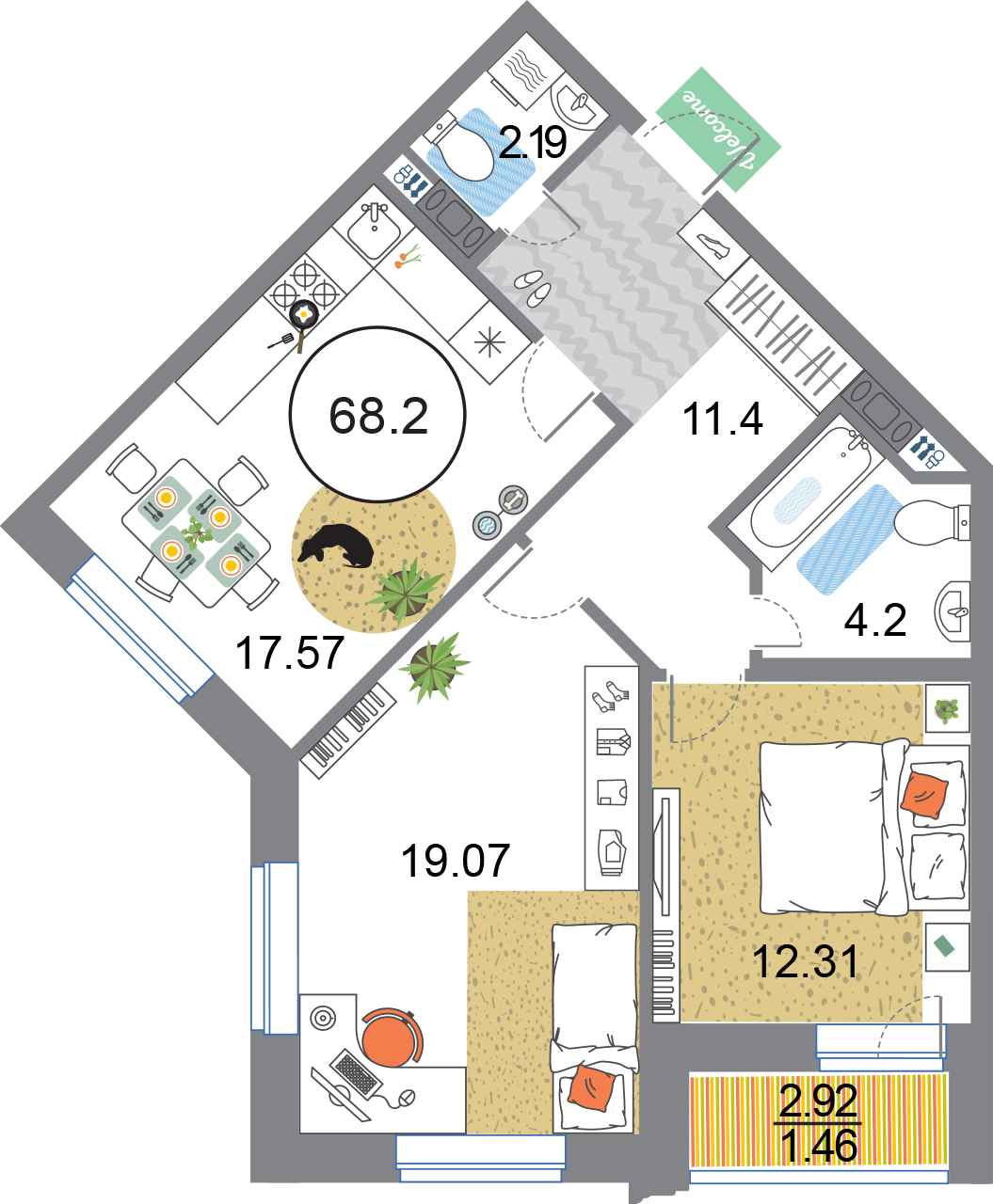 В общей сложности будет представлено 1585 квартир разной планировки. На выбор квартиры студии, а также одно-двух и трехкомнатные квартиры. Некоторые из них имеют приватные террасы и ванные комнаты с окнами, другие же укомплектованы кухнями-гостиными, мастер-спальнями и гардеробными. Высота потолков – 3,3 метра. Окна в квартирах деревянные, из трехслойного бруса. Будет установлена трехслойная очистка воды.