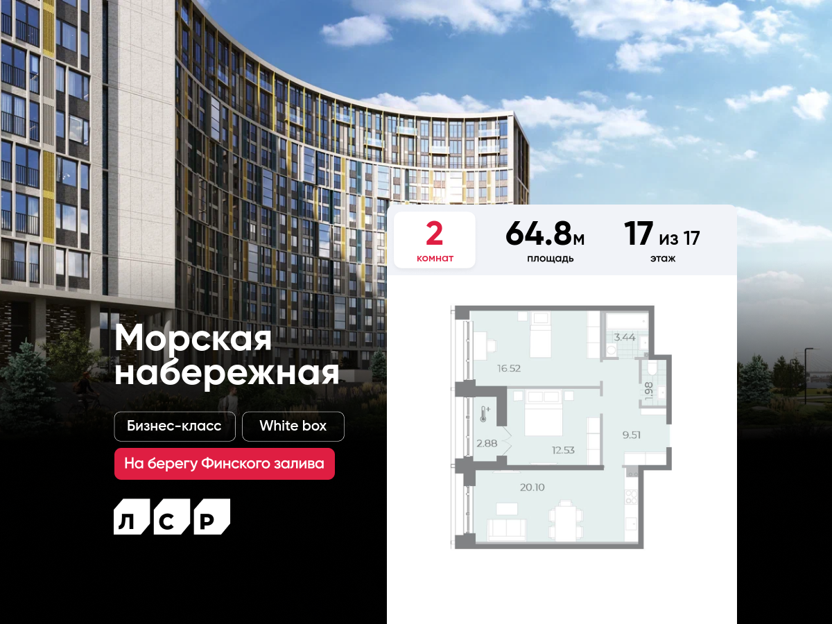 Евро двухкомнатные квартиры в ЖК «Морская набережная»