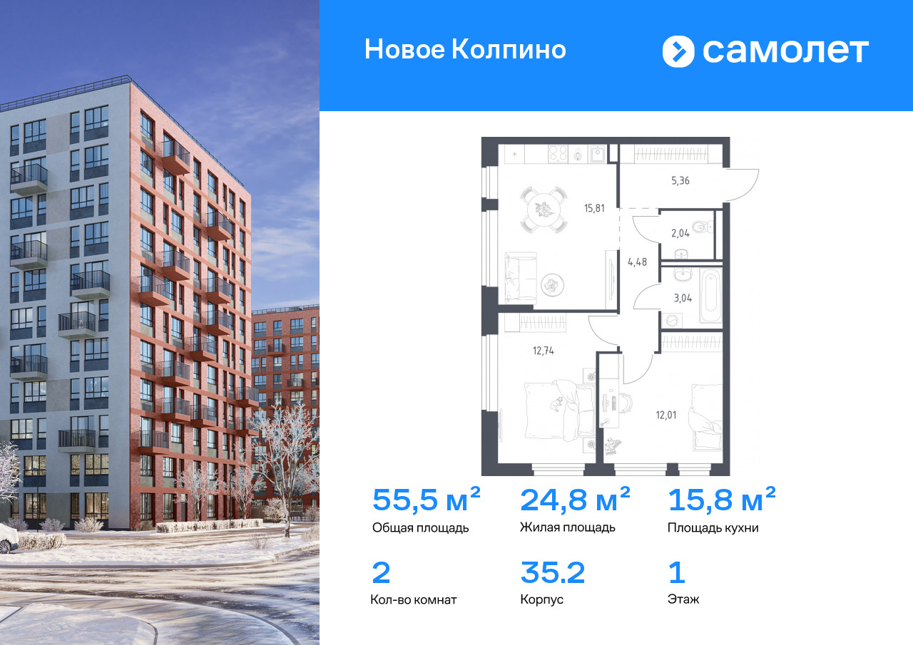 Двухкомнатные квартиры в ЖК Новое Колпино