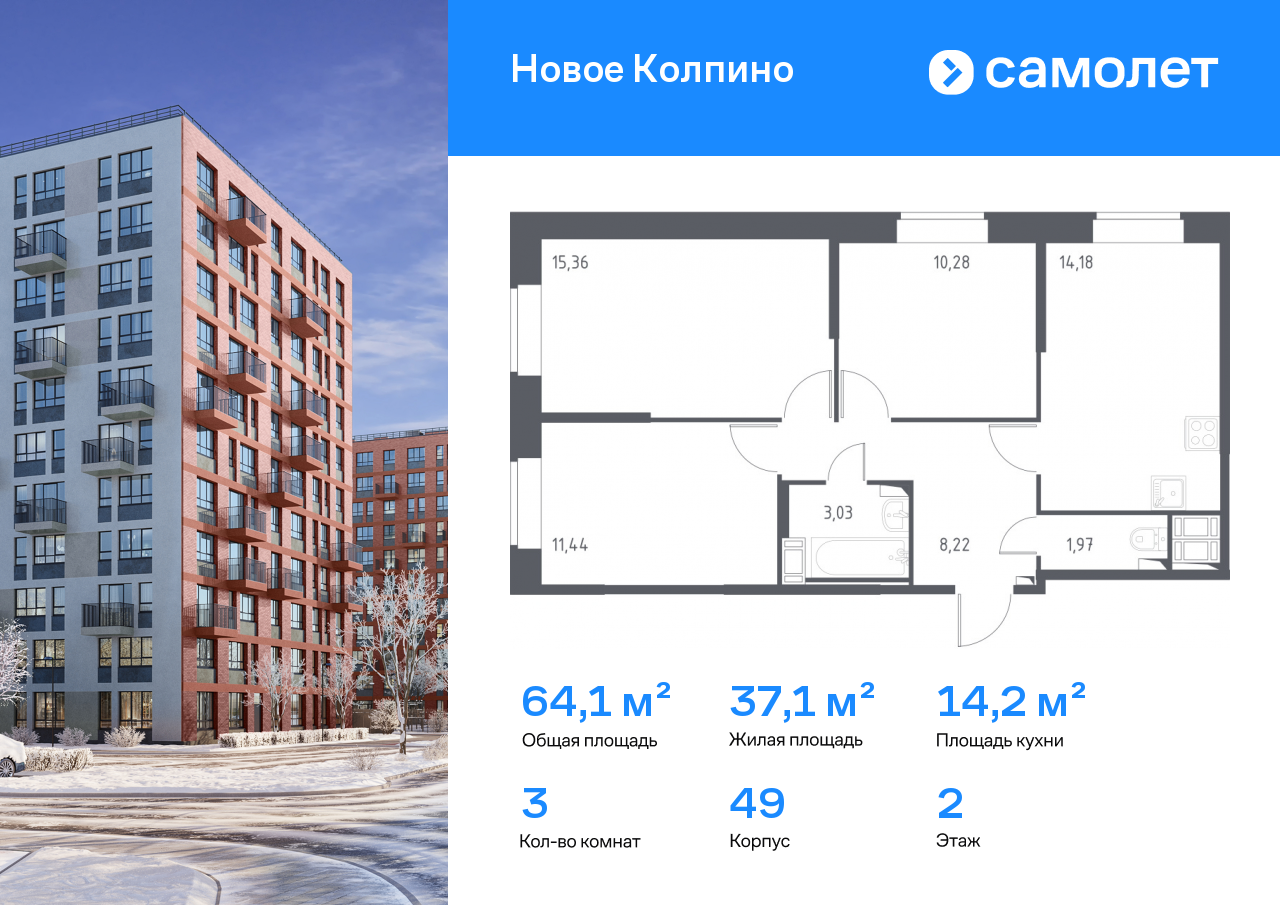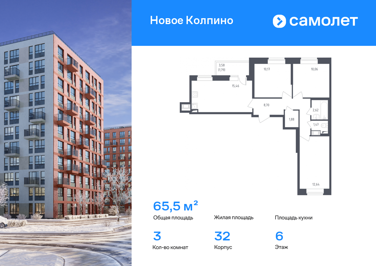 Трехкомнатные квартиры в ЖК Новое Колпино