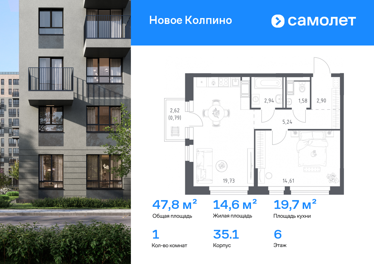 Евро однокомнатные квартиры в ЖК Новое Колпино