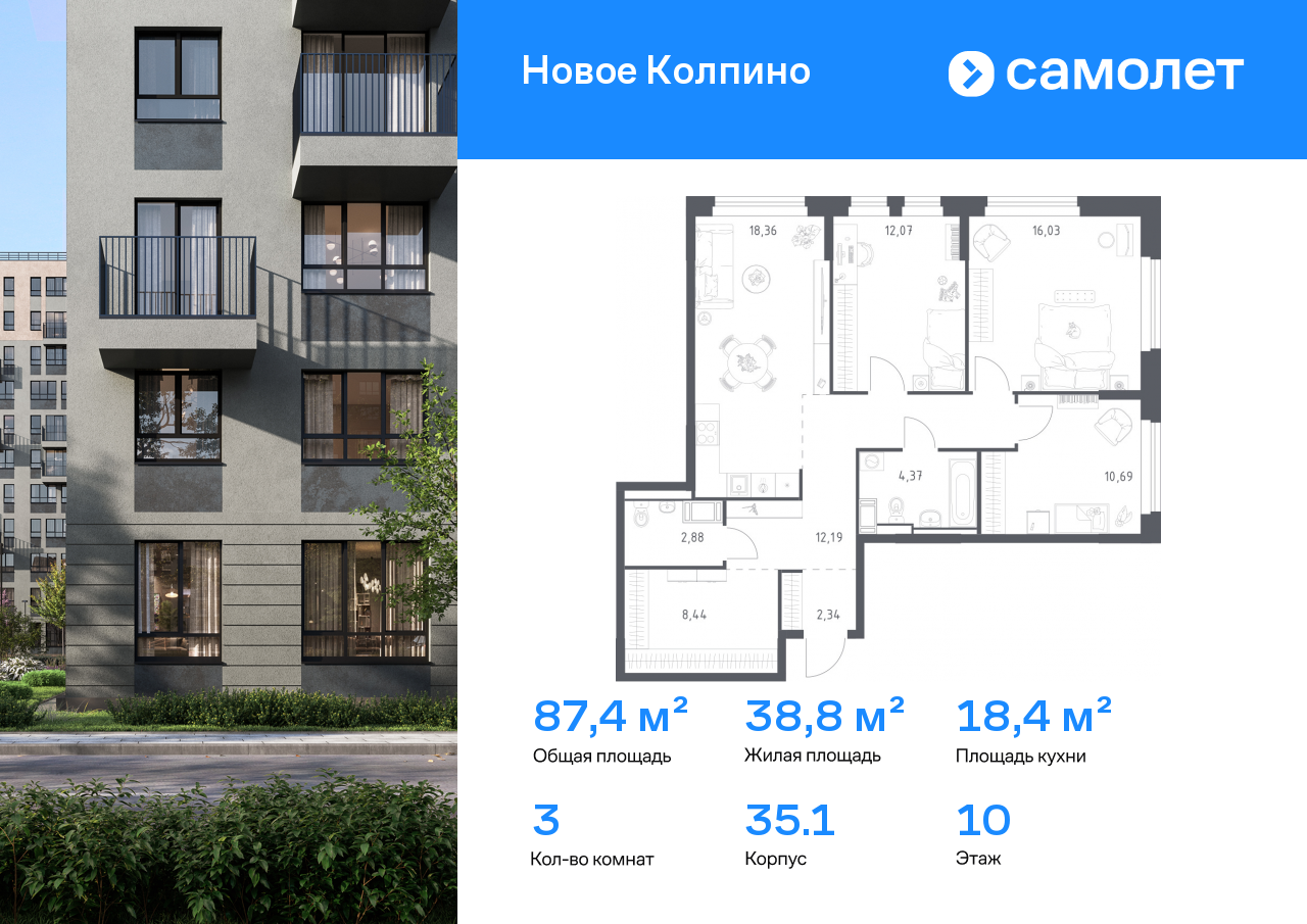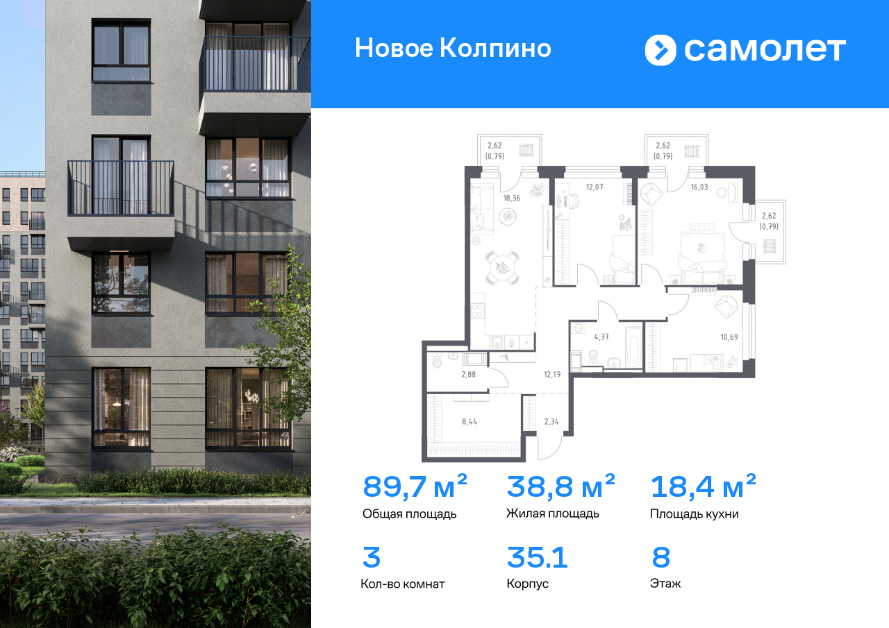 Евро трехкомнатные квартиры в ЖК Новое Колпино