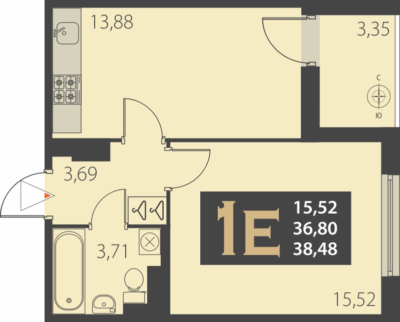1-комнатная (38.48м2)