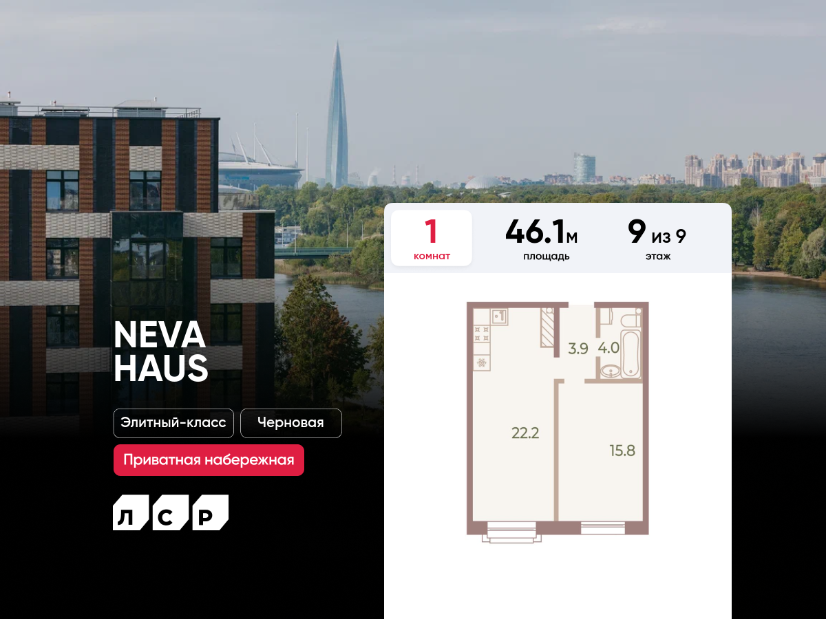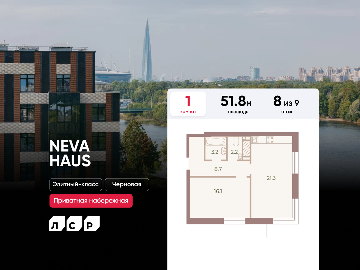 Евро однокомнатные квартиры в ЖК «NEVA HAUS (НЕВА ХАУС)»