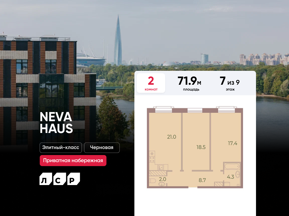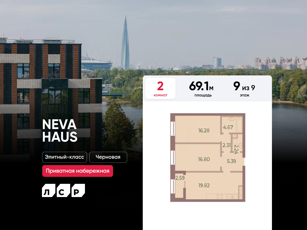Евро двухкомнатные квартиры в ЖК «NEVA HAUS (НЕВА ХАУС)»
