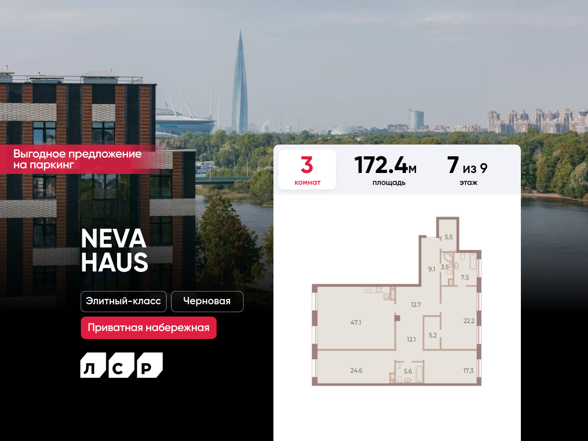 Евро трехкомнатные квартиры в ЖК «NEVA HAUS (НЕВА ХАУС)»