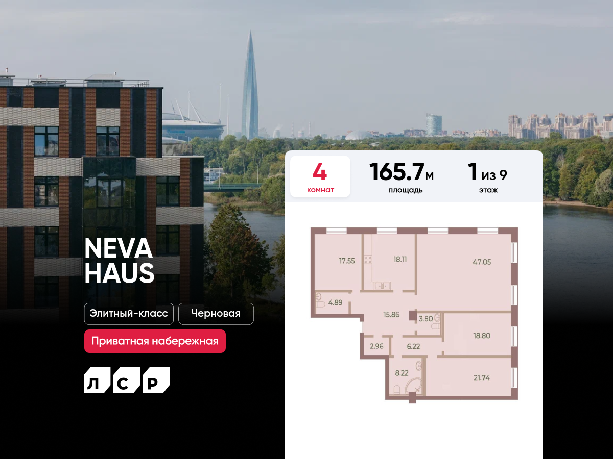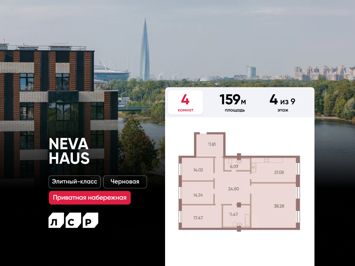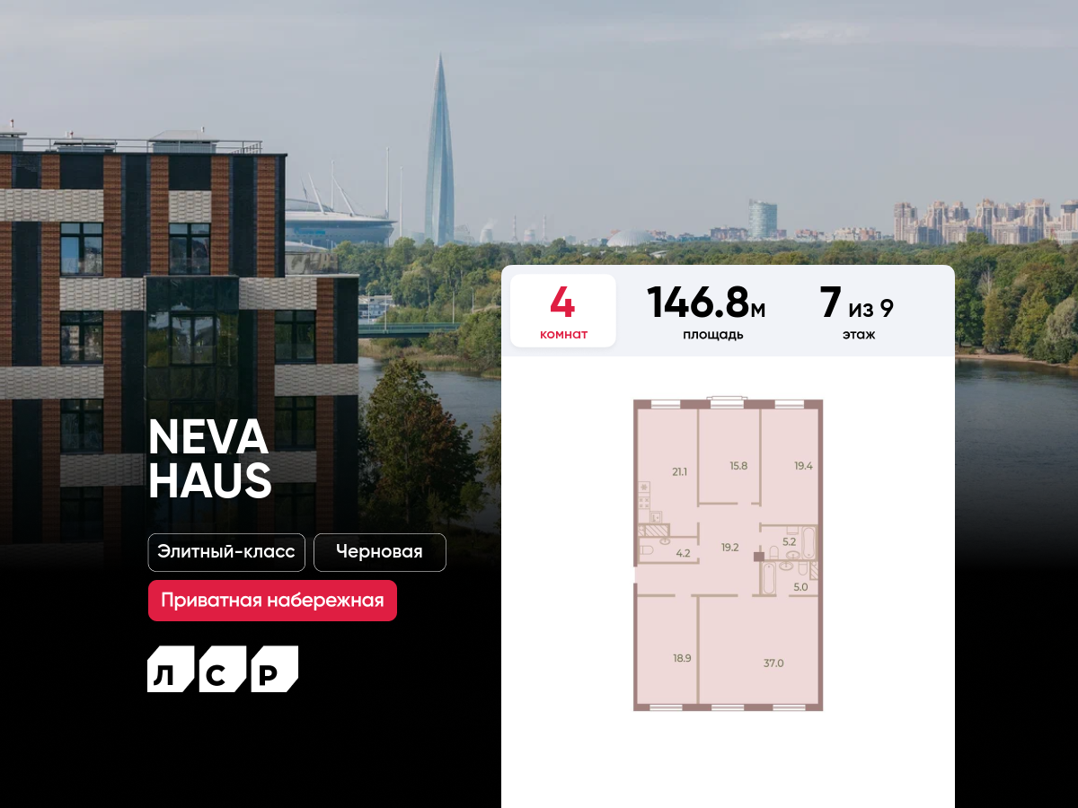Евро четырехкомнатные квартиры в ЖК «NEVA HAUS (НЕВА ХАУС)»