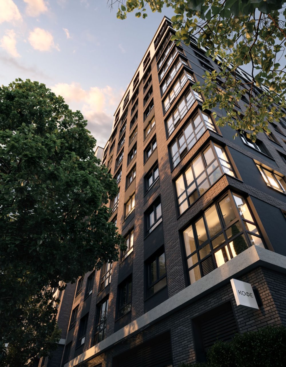 Комплекс представляет собой два дома попеременной этажности (от 20 до 26 этажей).