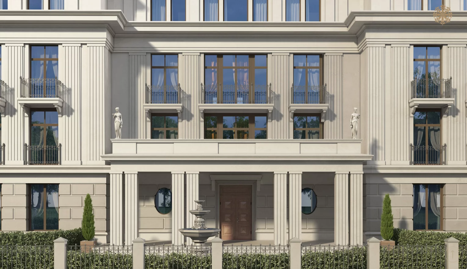 Дома декорированы мрамором, гранитом и мраморизированным известняком, а в холлах в стиле французского неоклассицизма декор составляют люстры, мозаичные полы, венецианская штукатурка. Италия – вот та страна, где выбраны предметы интерьера и дизайна – муранское стекло, зеркала, дизайнерская мебель с Пиренейского полуострова. Крыши комплекса оборудованы под террасы. В зданиях спроектированы автономные котельные и системы очистки воды.