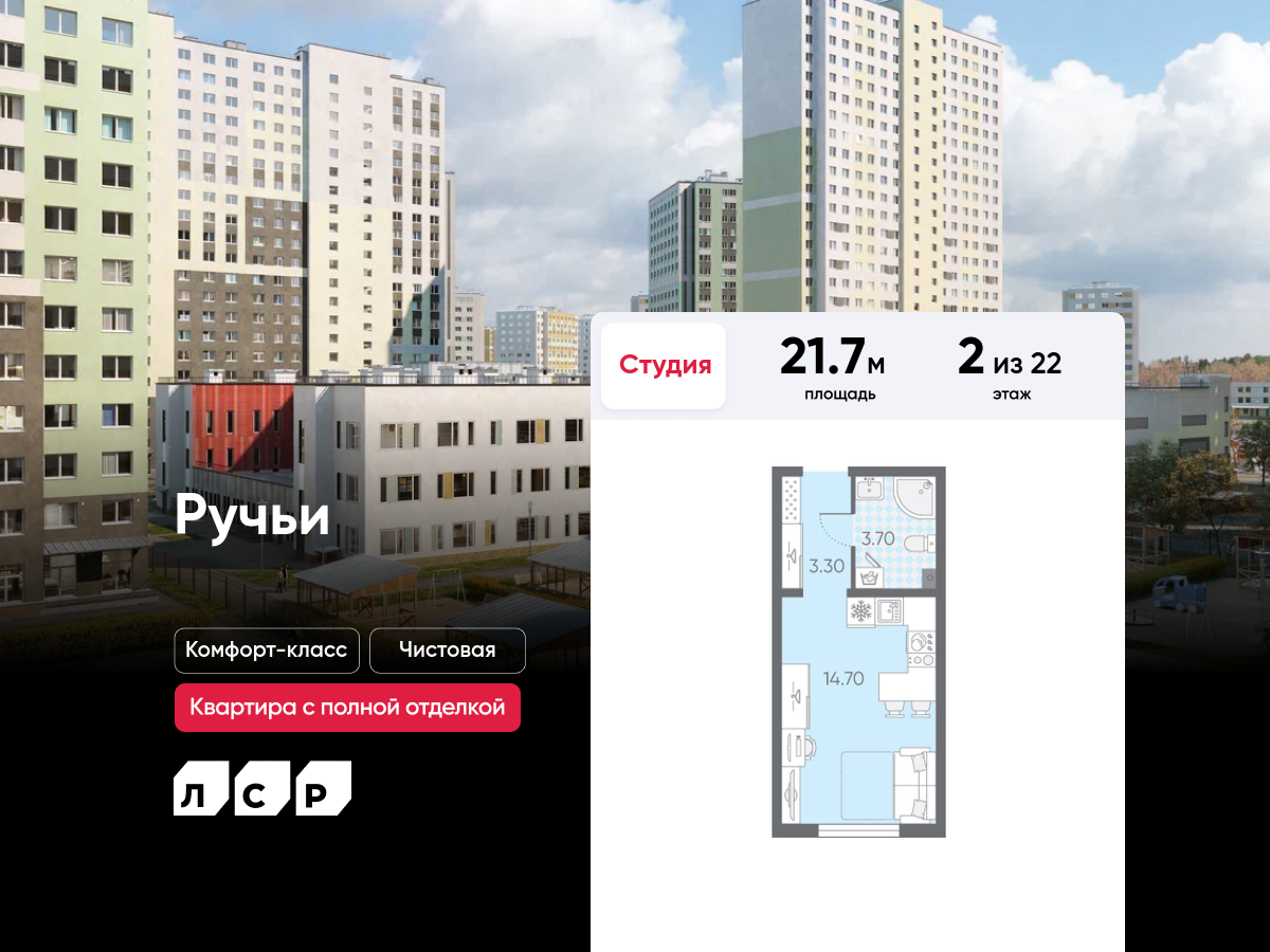 Жилой комплекс «Ручьи» – новый проект комфорт-класса в Красногвардейском районе. 18 современных домов будут возведены на территории 20 га, недалеко от жилых комплексов «Новая Охта» и «Цветной город». Квартал станет ярким образцом продуманного подхода к современной жилой застройке. Концепция проекта соединила в себе передовые градостроительные технологии, актуальные тенденции в архитектуре и организации жилого пространства. В комплексе предусмотрены функциональные и компактные квартиры – идеальный выбор для современного покупателя. Умеренная этажность домов и небольшое количество квартир на этаже сделают проживание жителей «Ручьев» еще и социально комфортным.