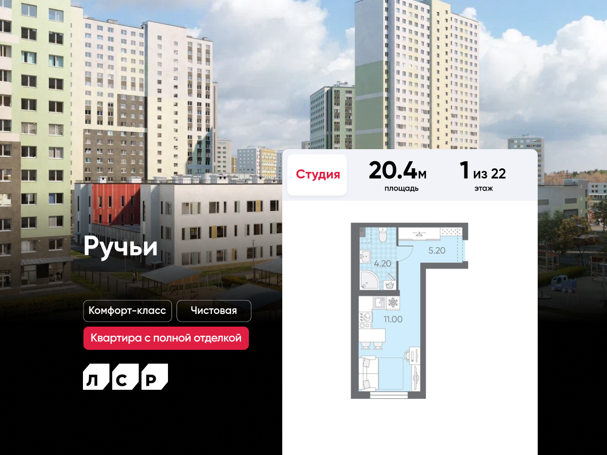 Квартиры-студии в ЖК Ручьи