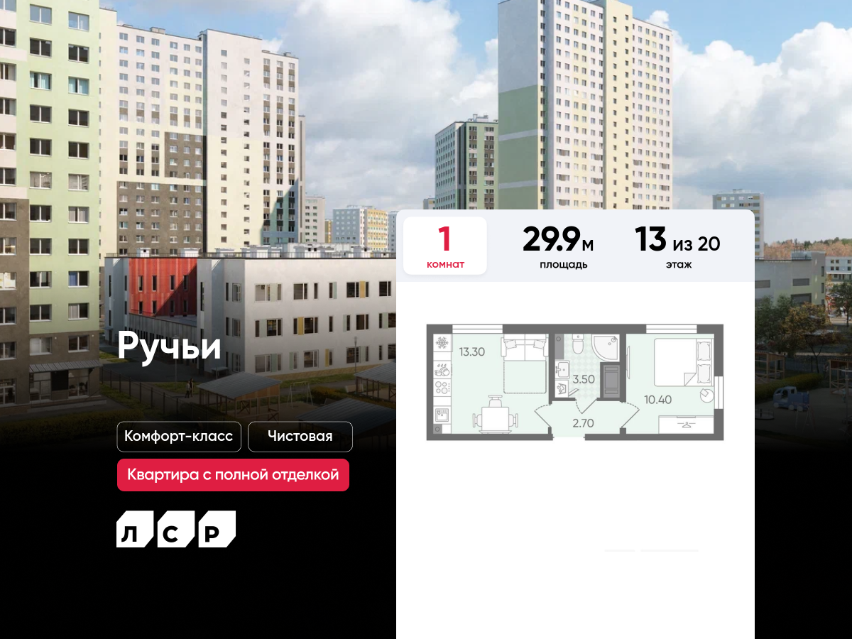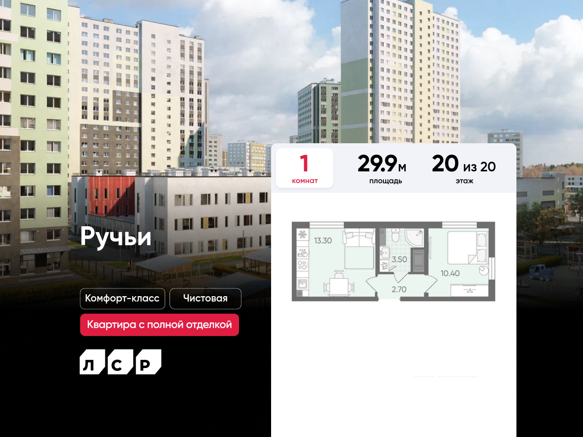 Жилой комплекс «Ручьи» – новый проект комфорт-класса в Красногвардейском районе. 18 современных домов будут возведены на территории 20 га, недалеко от жилых комплексов «Новая Охта» и «Цветной город». Квартал станет ярким образцом продуманного подхода к современной жилой застройке. Концепция проекта соединила в себе передовые градостроительные технологии, актуальные тенденции в архитектуре и организации жилого пространства. В комплексе предусмотрены функциональные и компактные квартиры – идеальный выбор для современного покупателя. Умеренная этажность домов и небольшое количество квартир на этаже сделают проживание жителей «Ручьев» еще и социально комфортным.