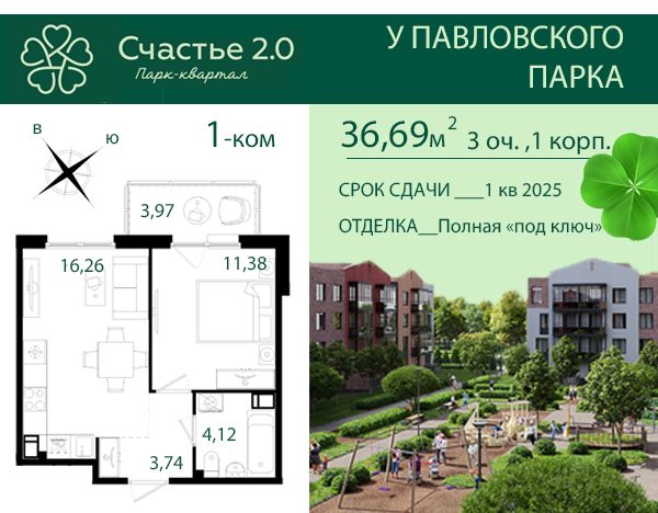 Однокомнатные квартиры в ЖК Счастье 2.0