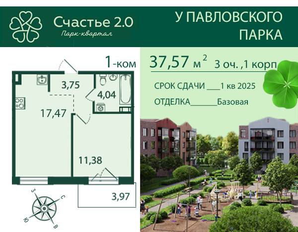 Однокомнатные квартиры в ЖК Счастье 2.0