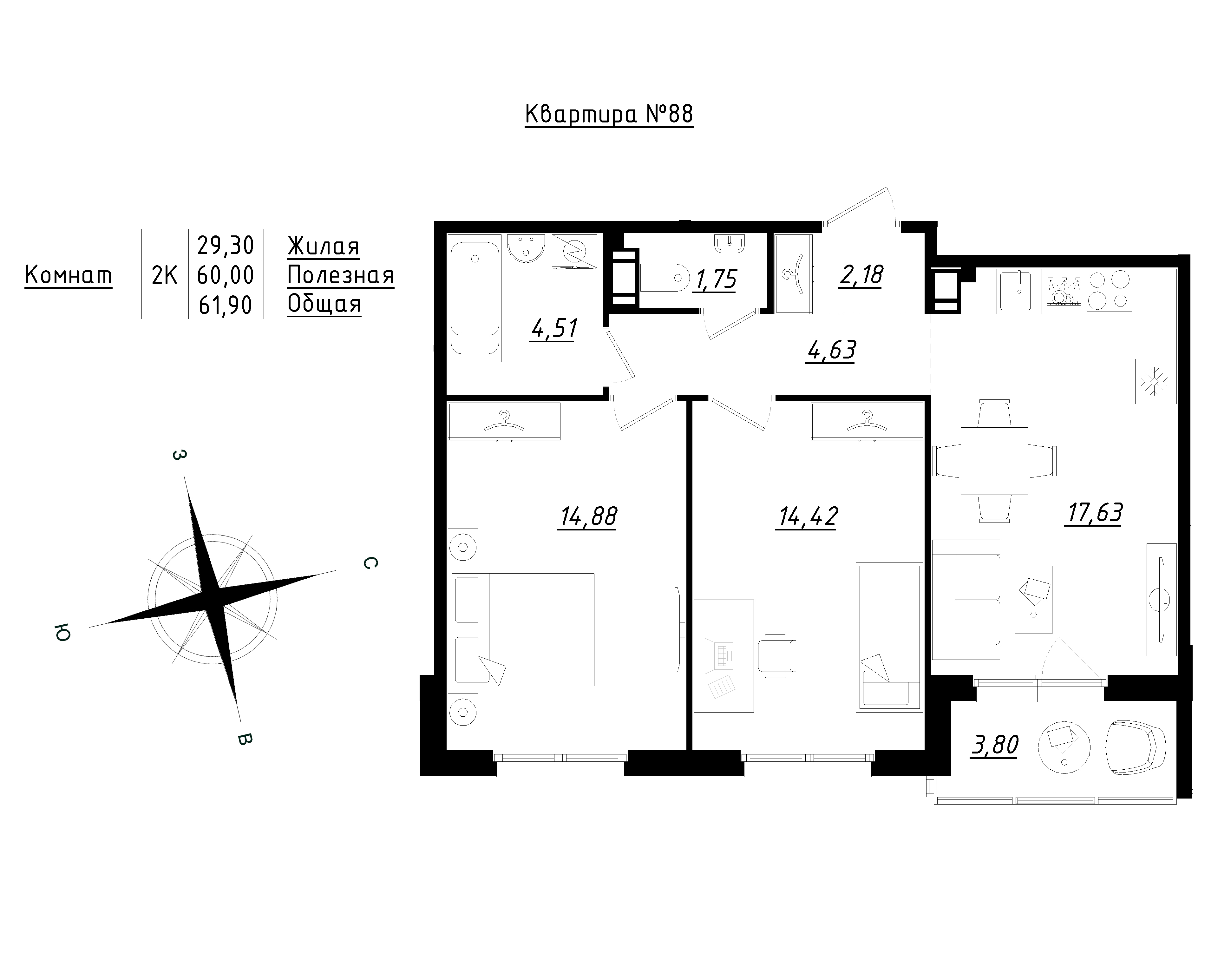 Двухкомнатные квартиры в ЖК Счастье 2.0