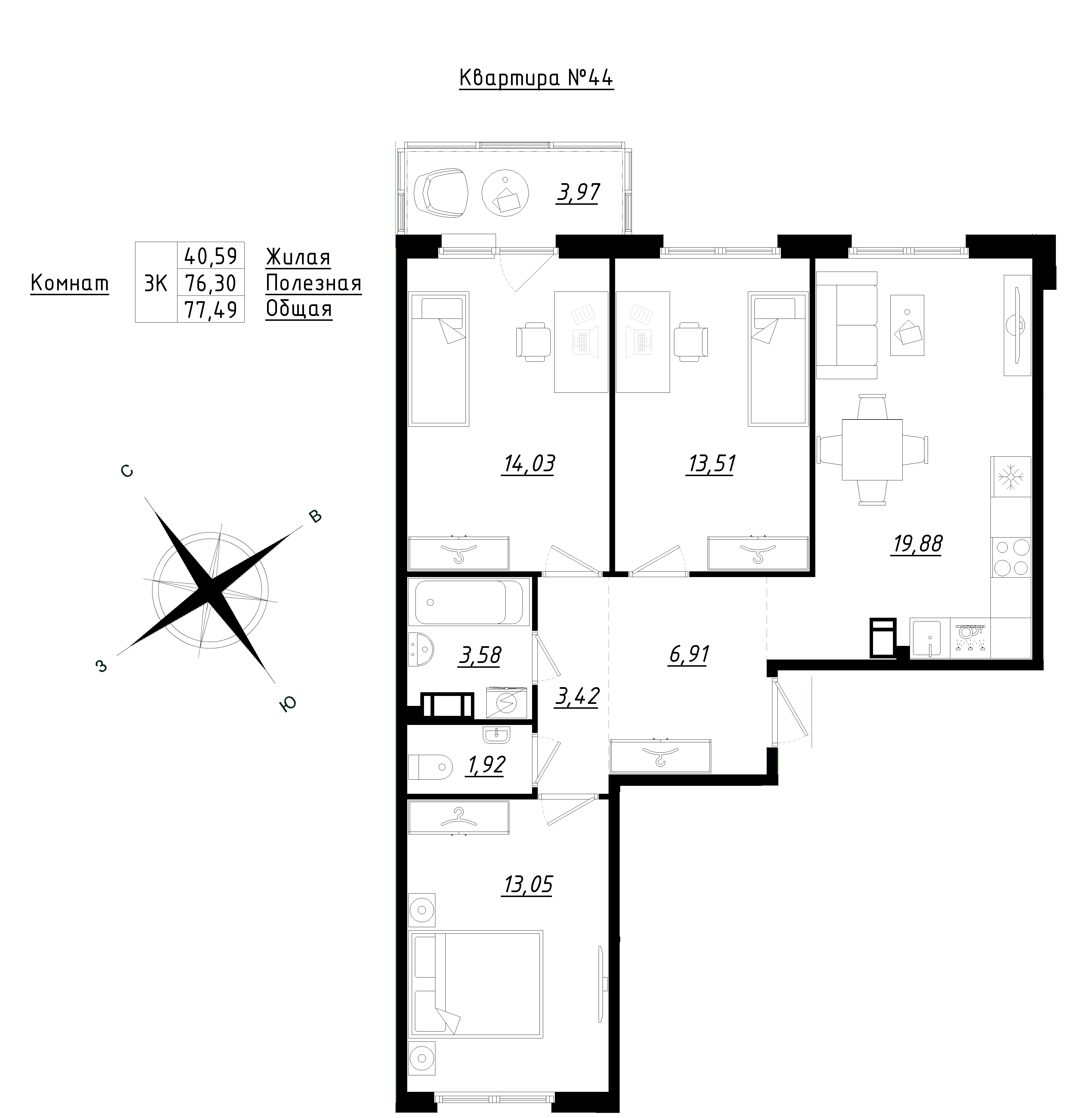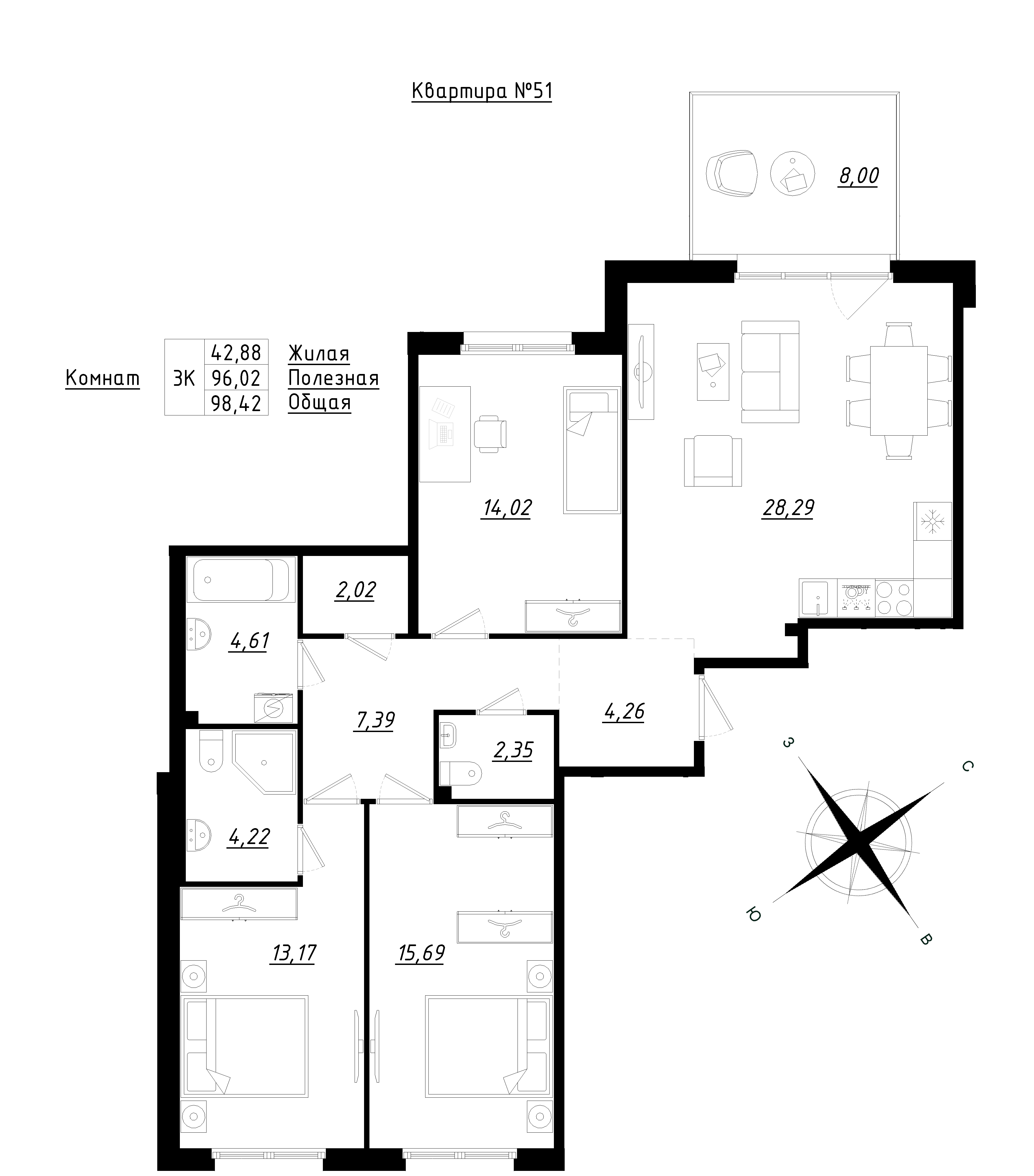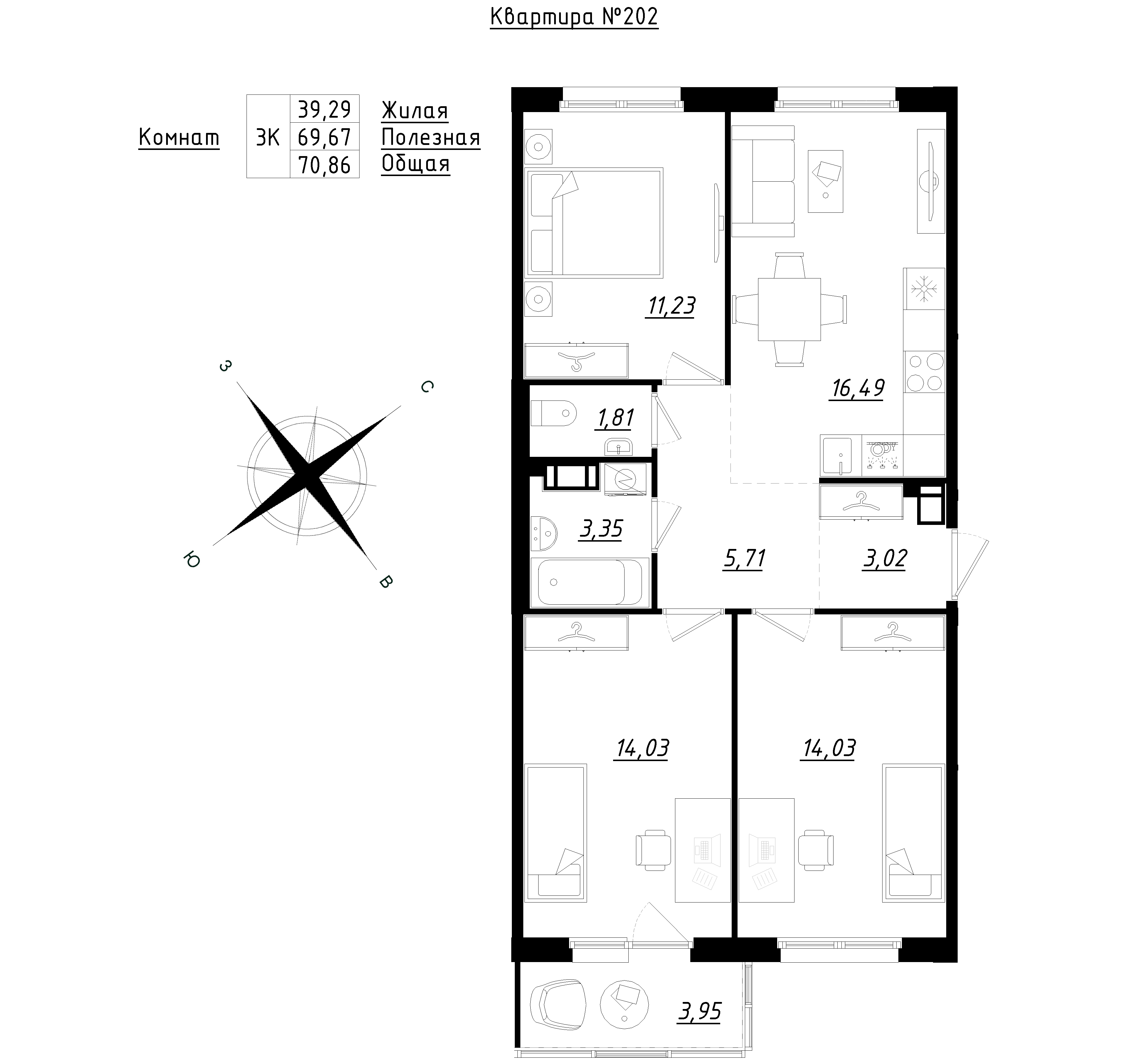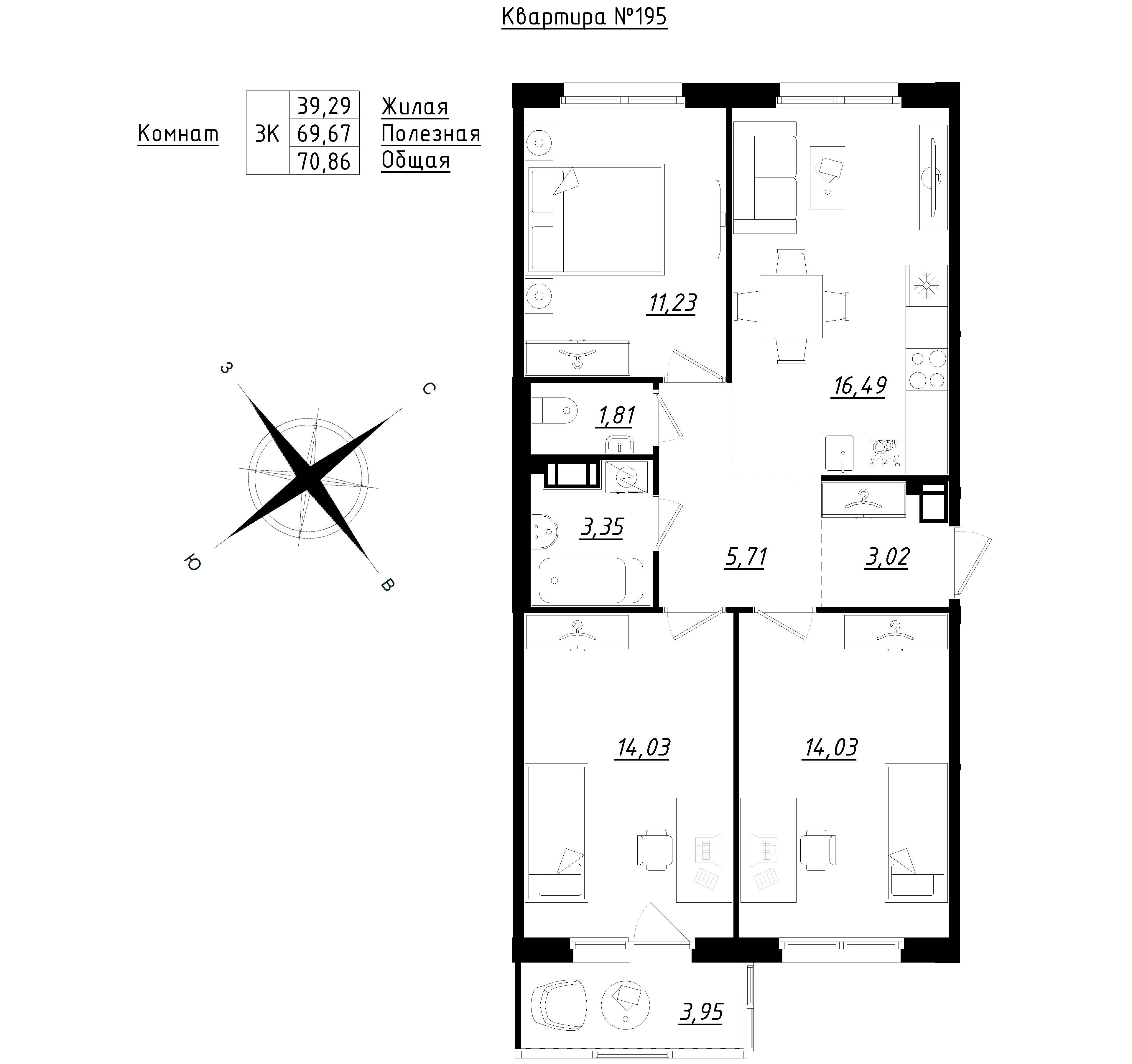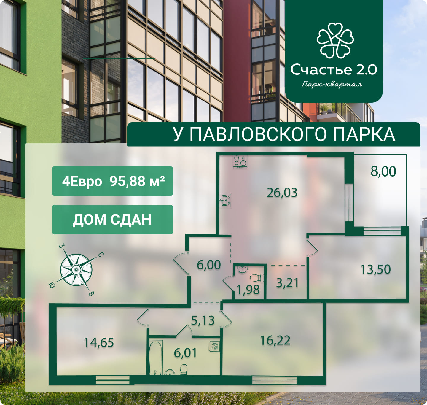 Трехкомнатные квартиры в ЖК Счастье 2.0