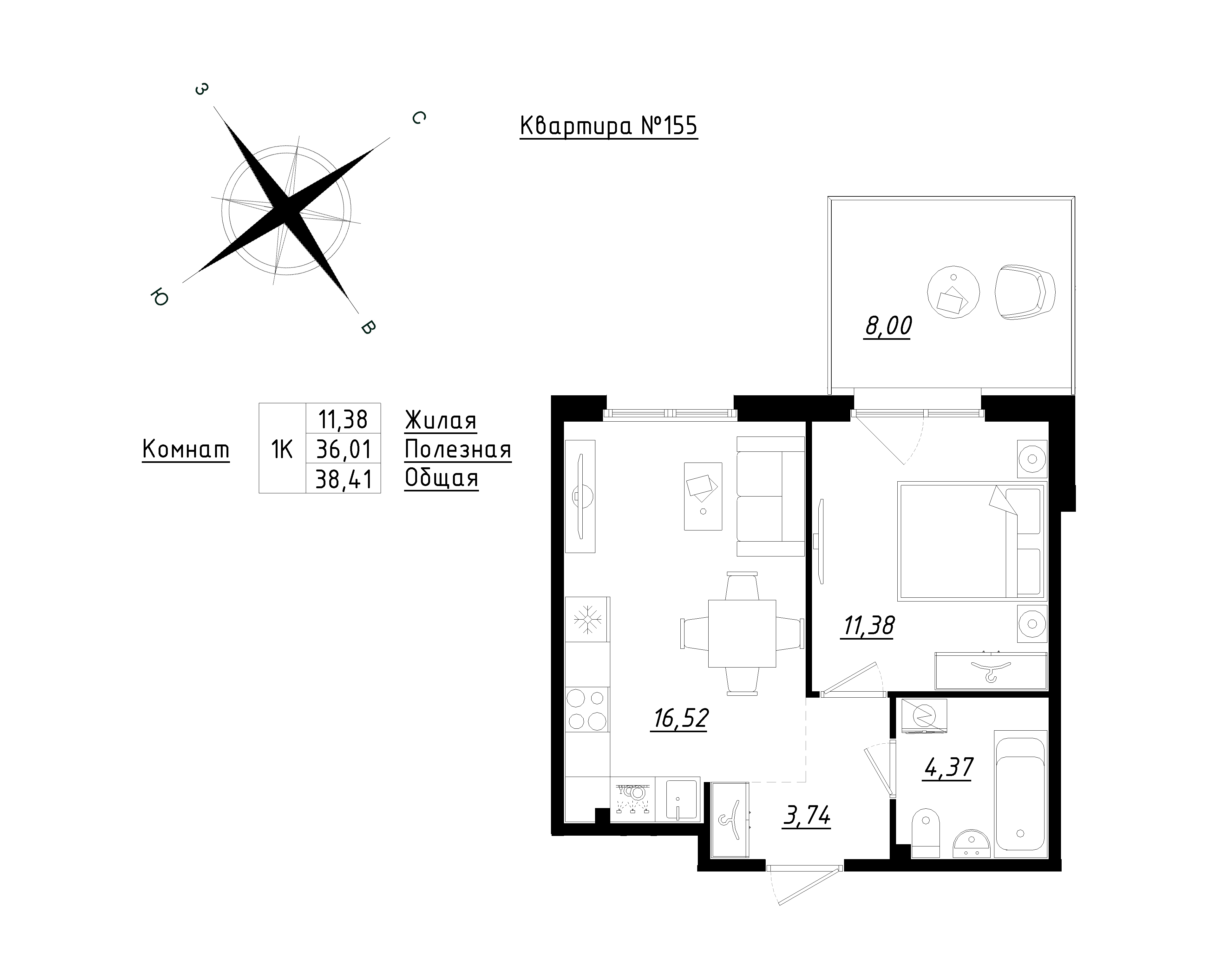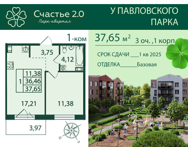 Евро однокомнатные квартиры в ЖК Счастье 2.0