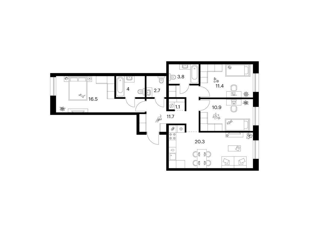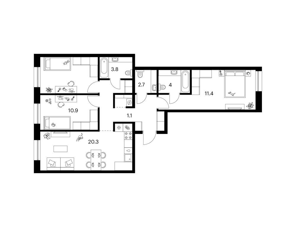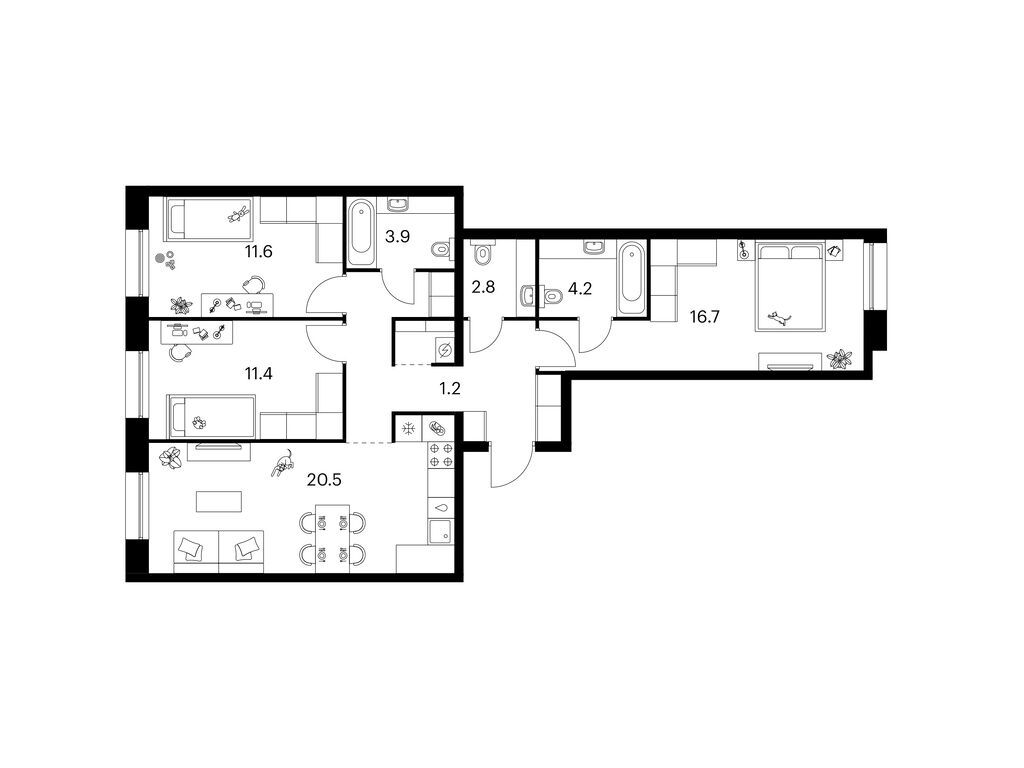Евро 3-комнатная (84.2м2)