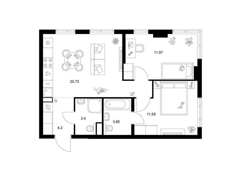 Район Новоселье активно развивается в городском формате: здесь уже работают детские сады, школа и магазины. Для любителей зимних видов спорта открыта круглосуточная ледовая арена Ice Rink. За покупками и развлечениями также можно быстро доехать: 10 минут — и вы в Аутлете Fashion House Таллинское, гипермаркетах Лента, Леруа Мерлен и Окей.
