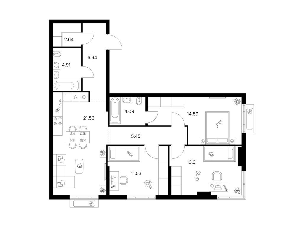 Трехкомнатные квартиры в Таллинский парк