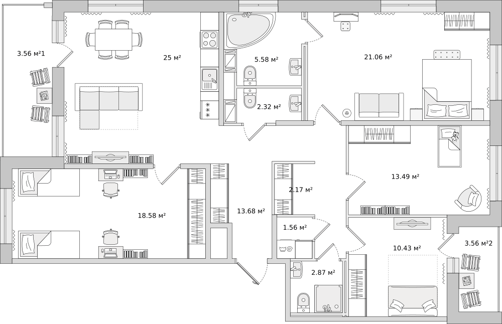 Четырехкомнатные квартиры в ЦДС Dreamline
