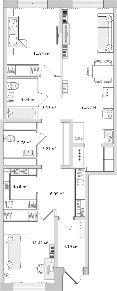 Евро двухкомнатные квартиры в ЦДС Dreamline