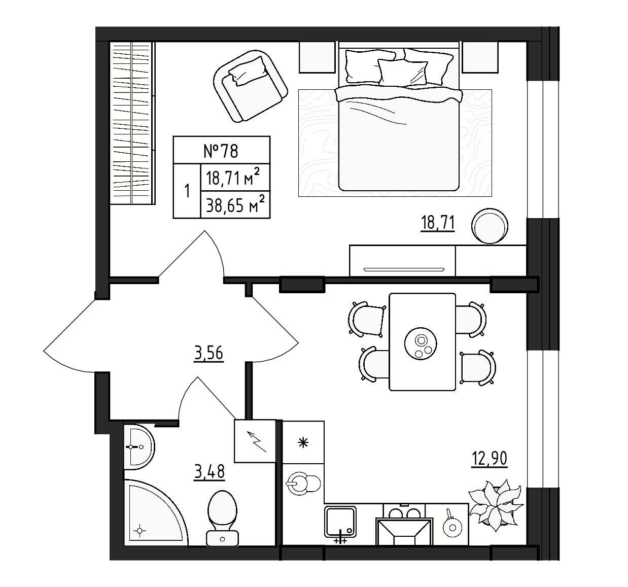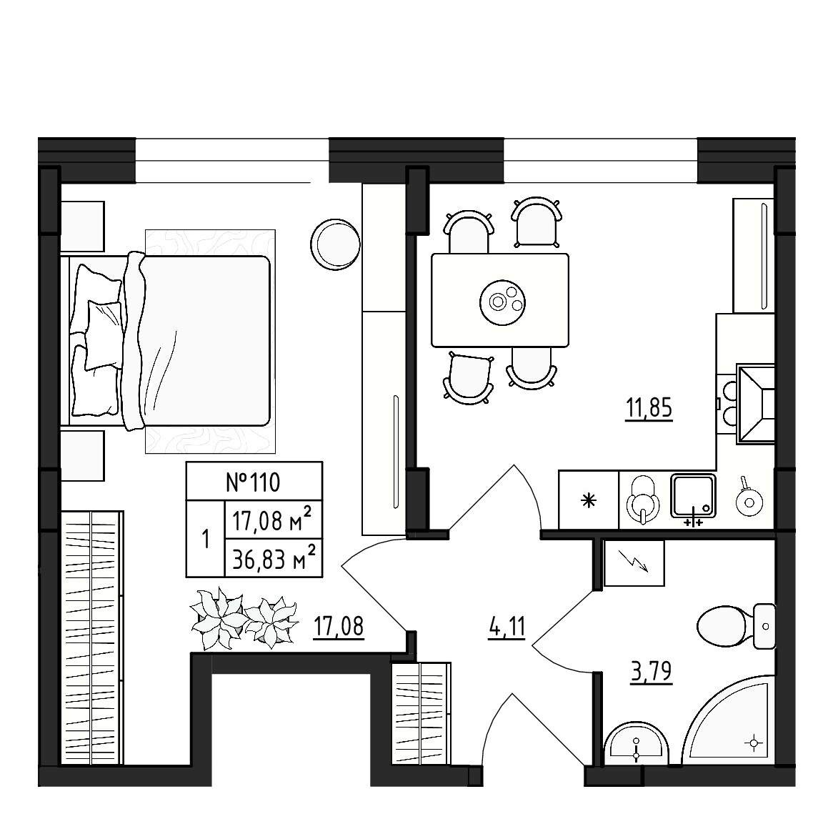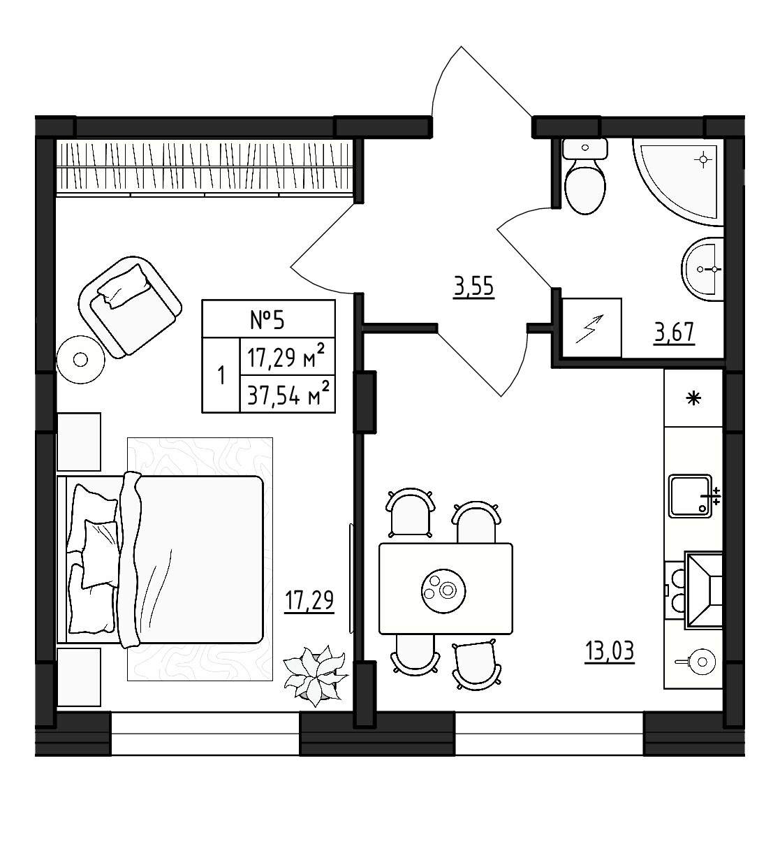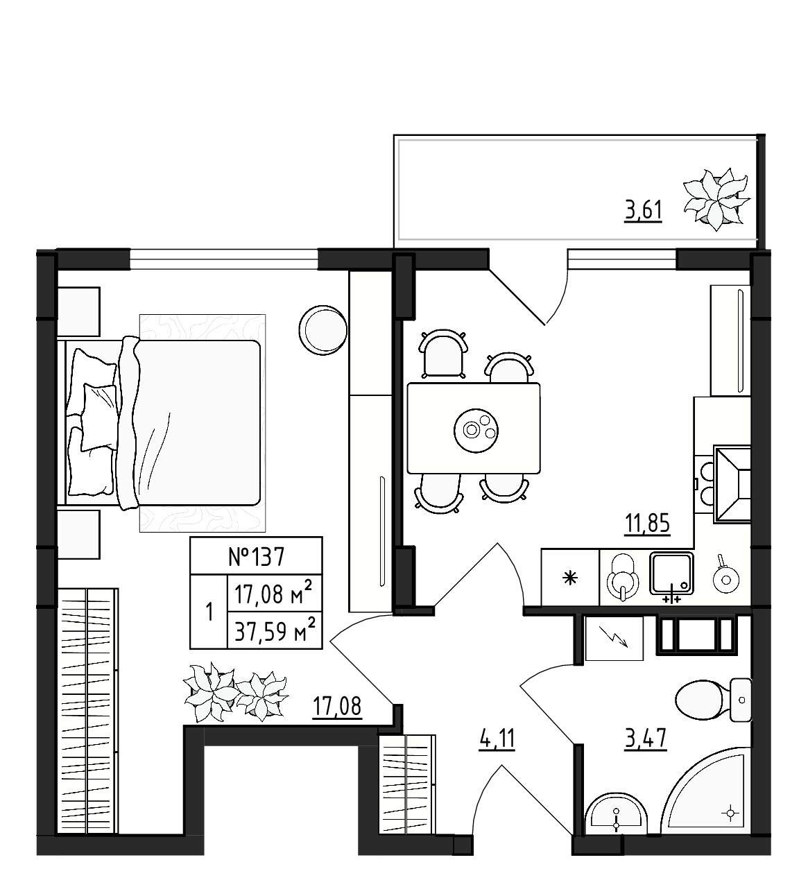 Квартирография – одно – двухкомнатные квартиры, квартиры со свободной планировкой. Площадь жилья варьируется от 17 до 59 кв.м. В двухкомнатных квартирах санузел раздельный, есть варианты с балконом. Застройщик сдает жилье без отделки. Будут подведены коммуникации, установлены окна, входные двери, счетчики.
