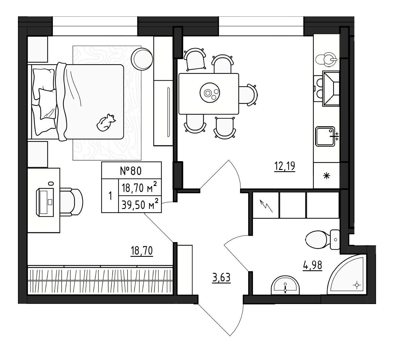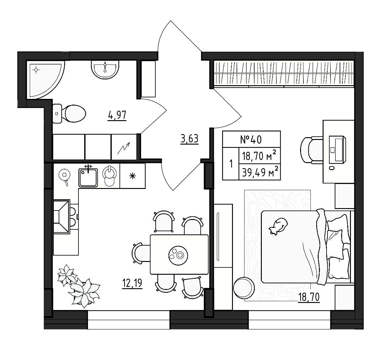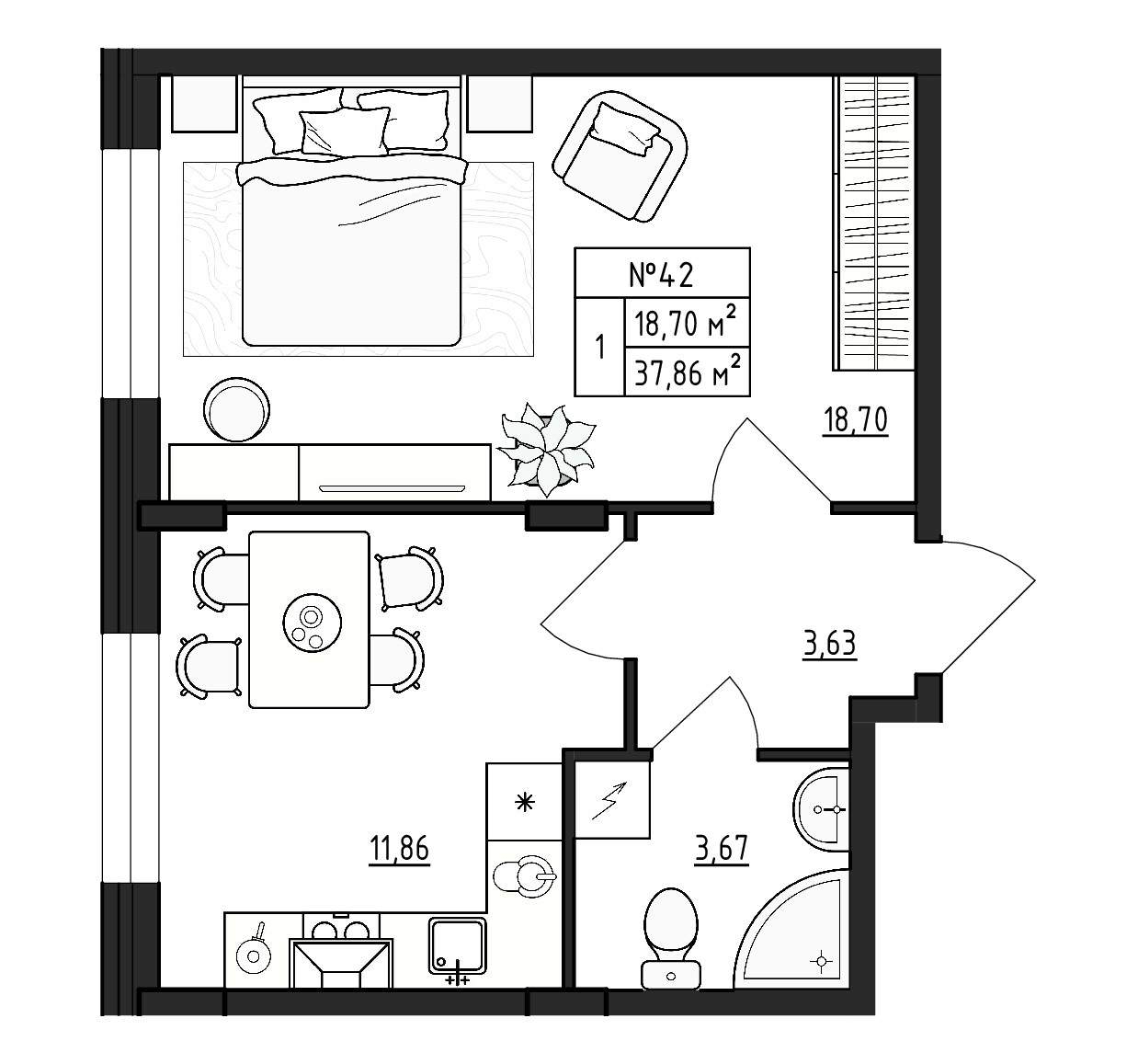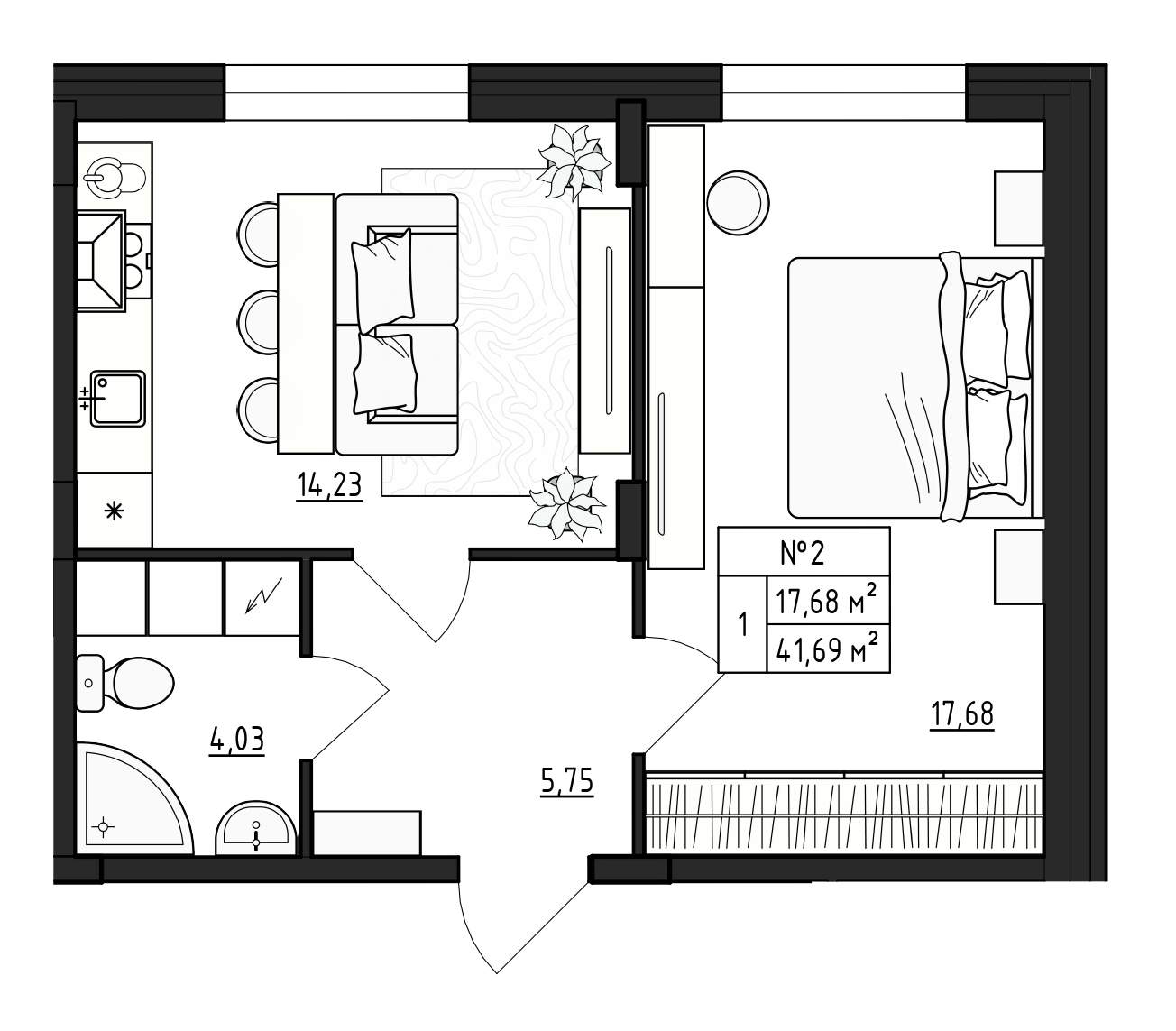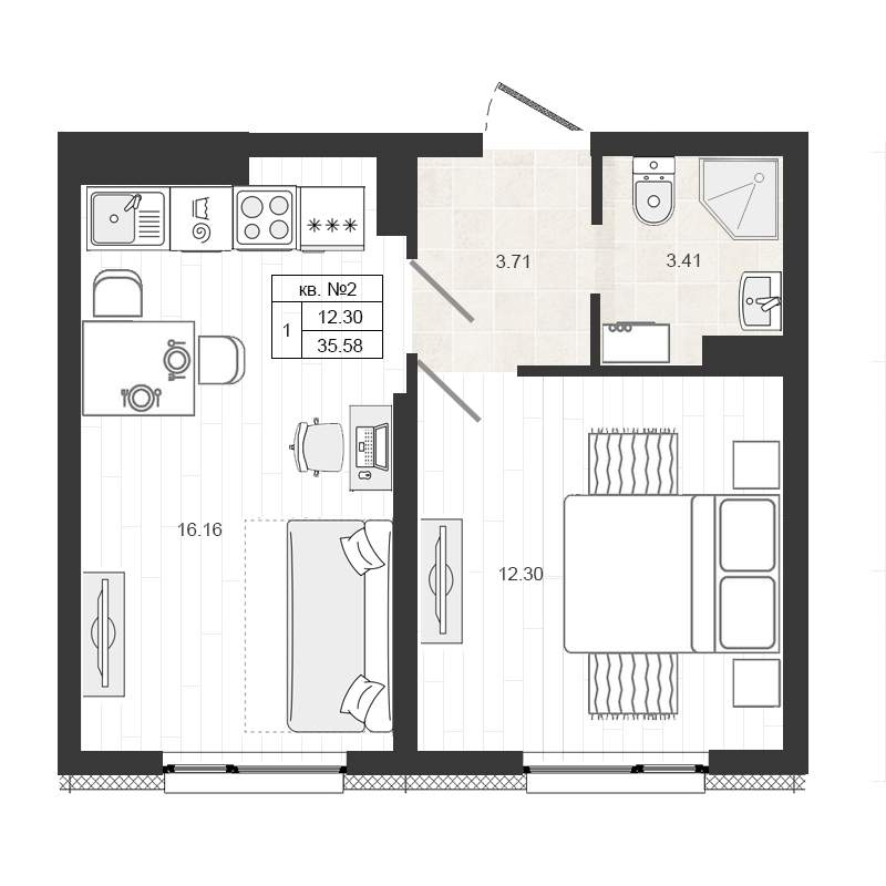 Квартирография – одно – двухкомнатные квартиры, квартиры со свободной планировкой. Площадь жилья варьируется от 17 до 59 кв.м. В двухкомнатных квартирах санузел раздельный, есть варианты с балконом. Застройщик сдает жилье без отделки. Будут подведены коммуникации, установлены окна, входные двери, счетчики.