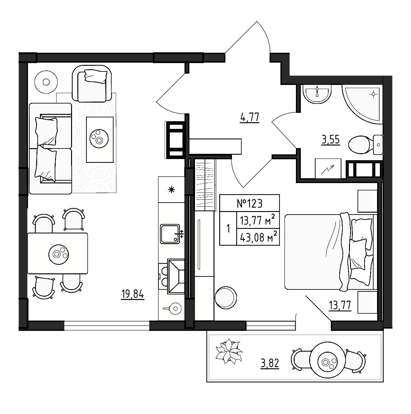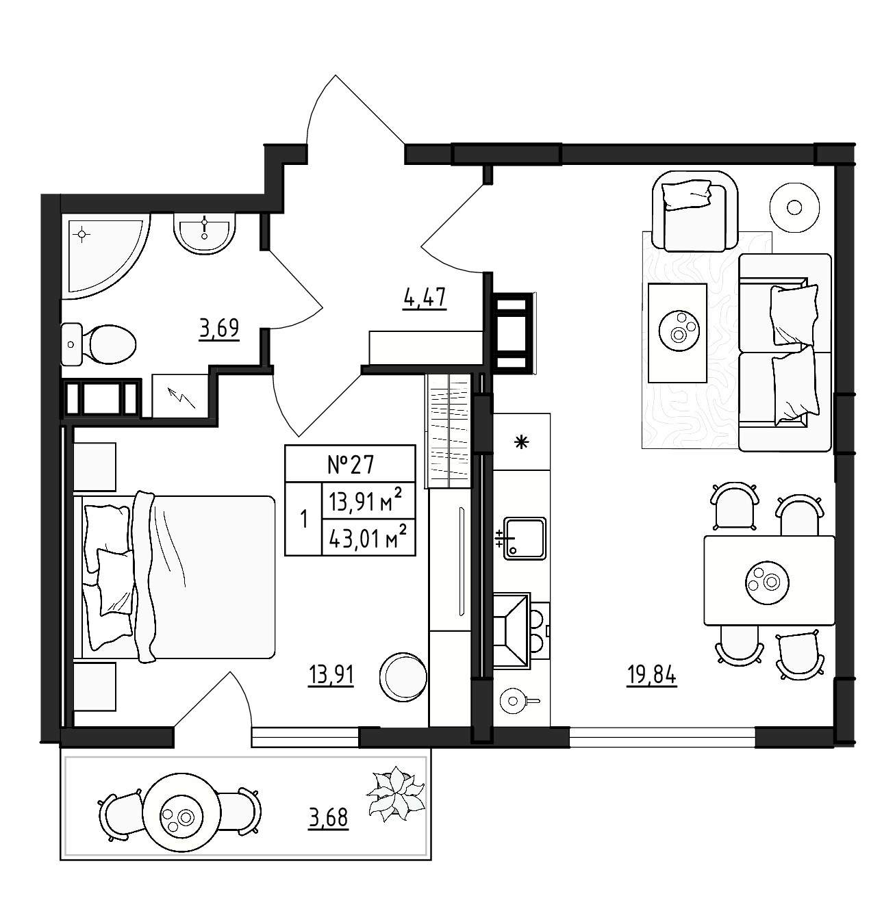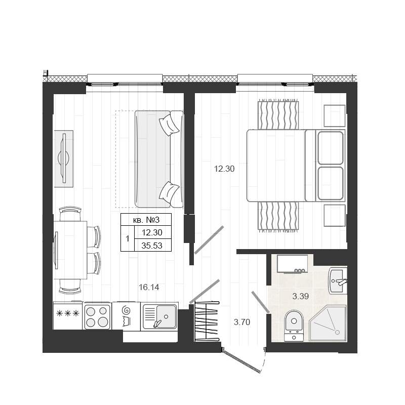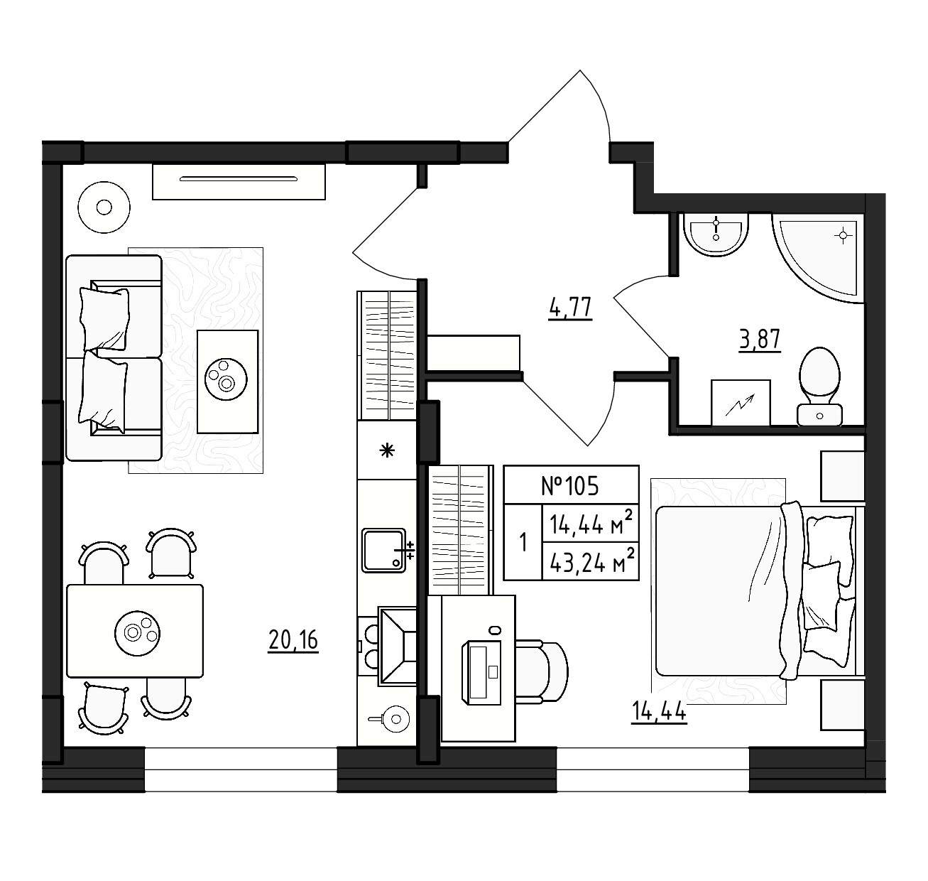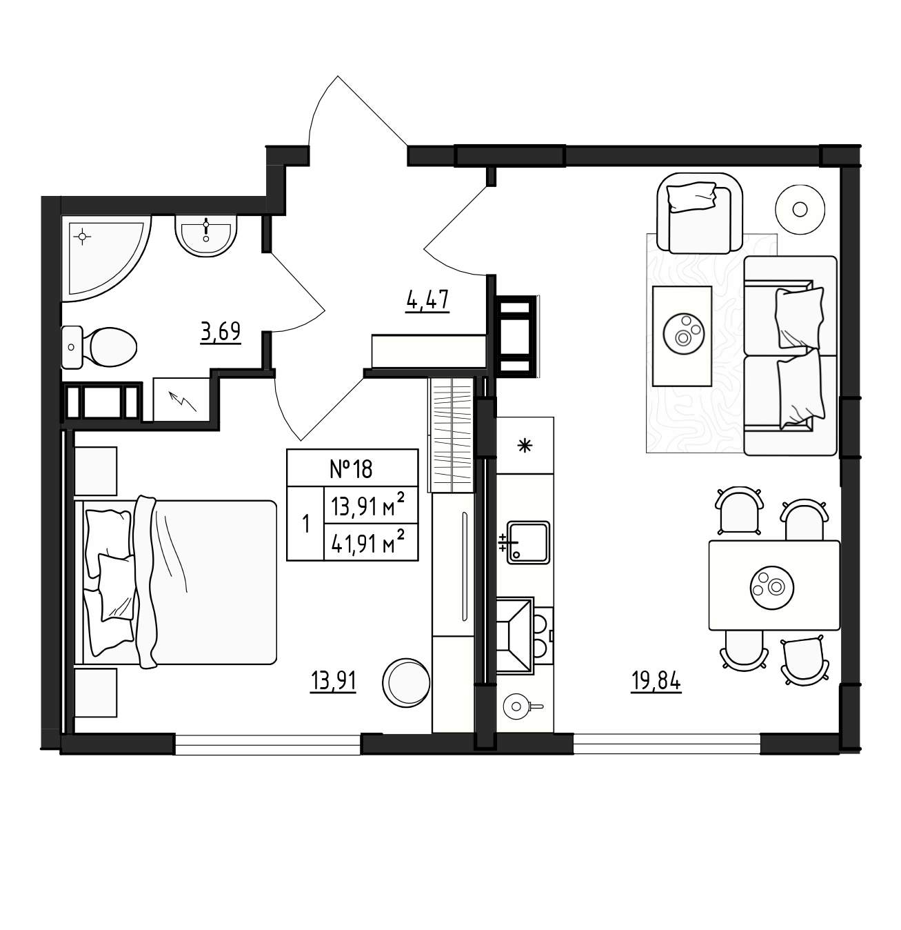 Квартирография – одно – двухкомнатные квартиры, квартиры со свободной планировкой. Площадь жилья варьируется от 17 до 59 кв.м. В двухкомнатных квартирах санузел раздельный, есть варианты с балконом. Застройщик сдает жилье без отделки. Будут подведены коммуникации, установлены окна, входные двери, счетчики.