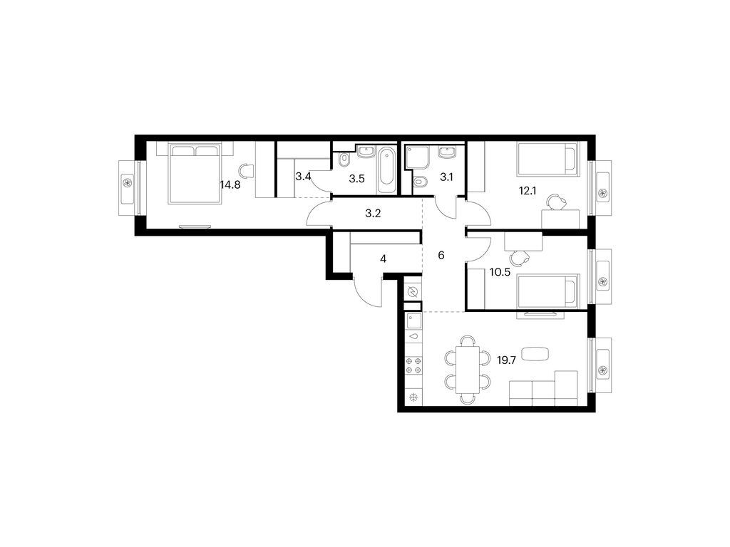 Евро трехкомнатные квартиры в Витебский парк