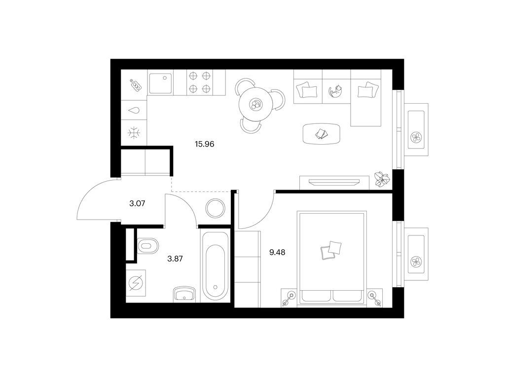 Площади квартир — от 25 до 80 м2. Планировки продуманы так, чтобы каждый квадратный метр жилой площади можно было эффективно использовать. Все квартиры сдаются с готовой отделкой.