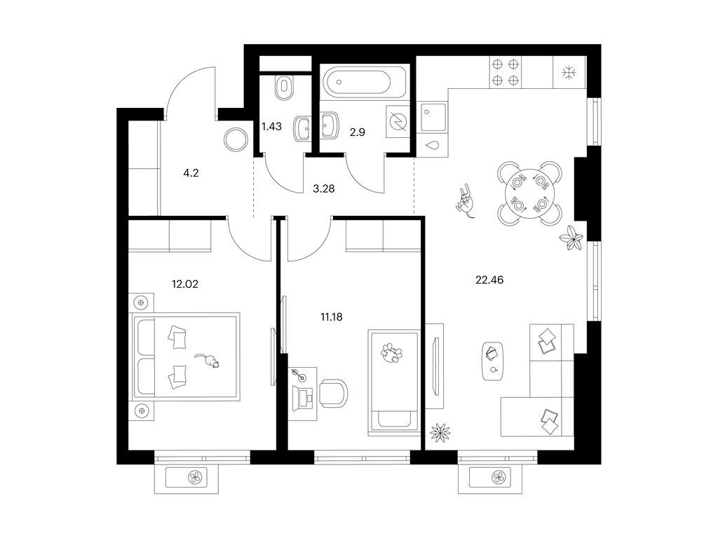 Площади квартир — от 25 до 80 м2. Планировки продуманы так, чтобы каждый квадратный метр жилой площади можно было эффективно использовать. Все квартиры сдаются с готовой отделкой.