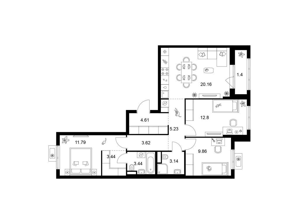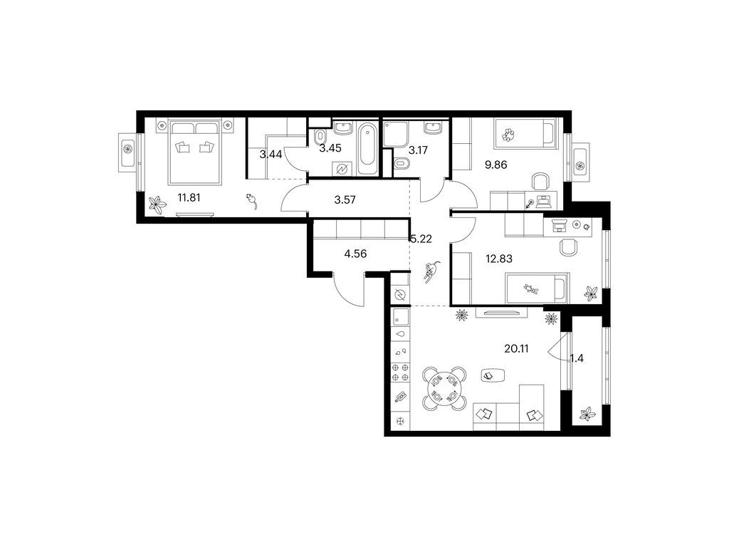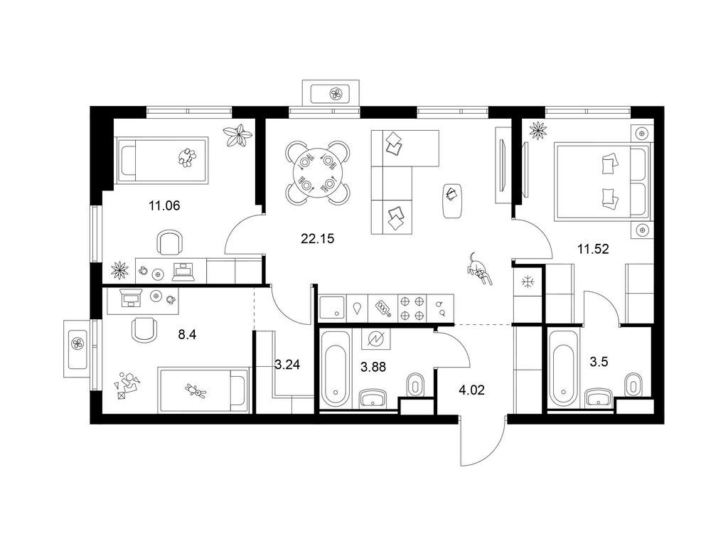 Площади квартир — от 25 до 80 м2. Планировки продуманы так, чтобы каждый квадратный метр жилой площади можно было эффективно использовать. Все квартиры сдаются с готовой отделкой.