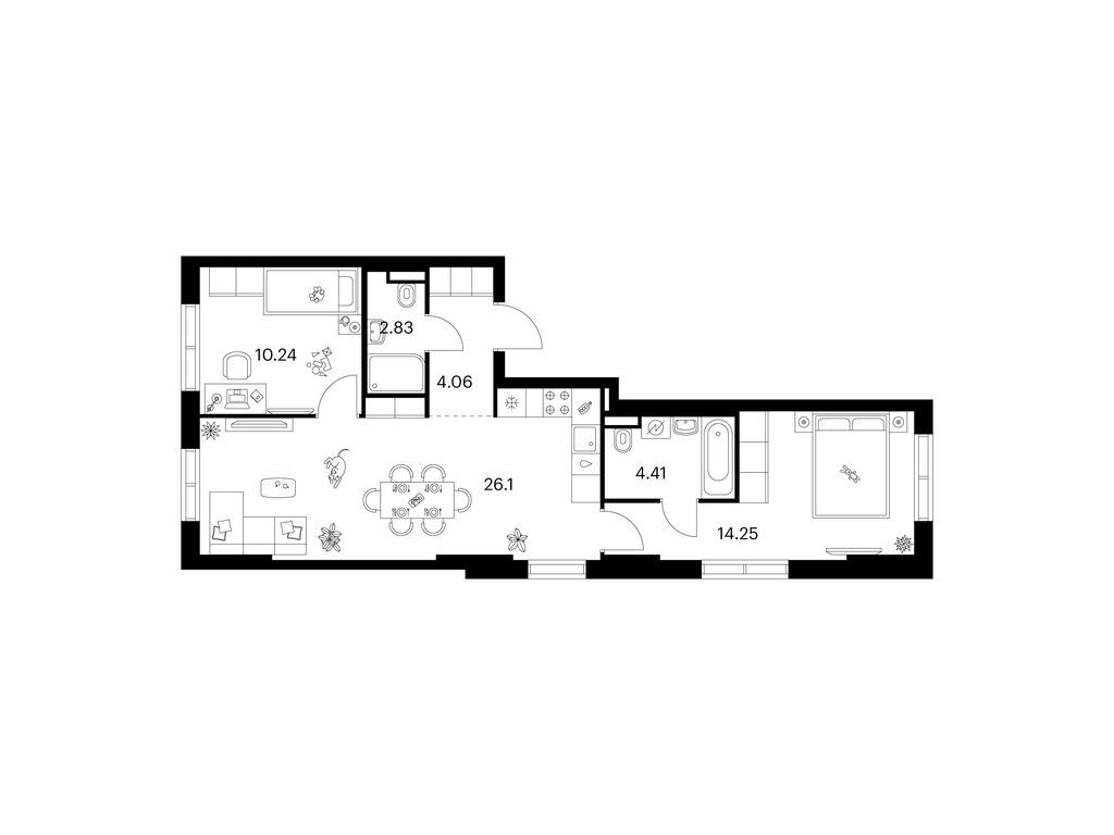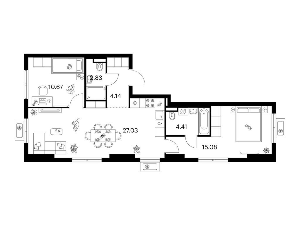 Площади квартир — от 25 до 80 м2. Планировки продуманы так, чтобы каждый квадратный метр жилой площади можно было эффективно использовать. Все квартиры сдаются с готовой отделкой.
