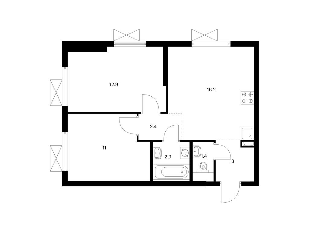 Площади квартир — от 25 до 80 м2. Планировки продуманы так, чтобы каждый квадратный метр жилой площади можно было эффективно использовать. Все квартиры сдаются с готовой отделкой.