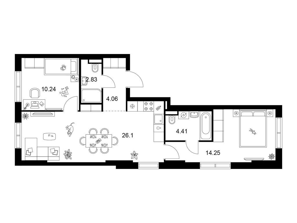 Площади квартир — от 25 до 80 м2. Планировки продуманы так, чтобы каждый квадратный метр жилой площади можно было эффективно использовать. Все квартиры сдаются с готовой отделкой.