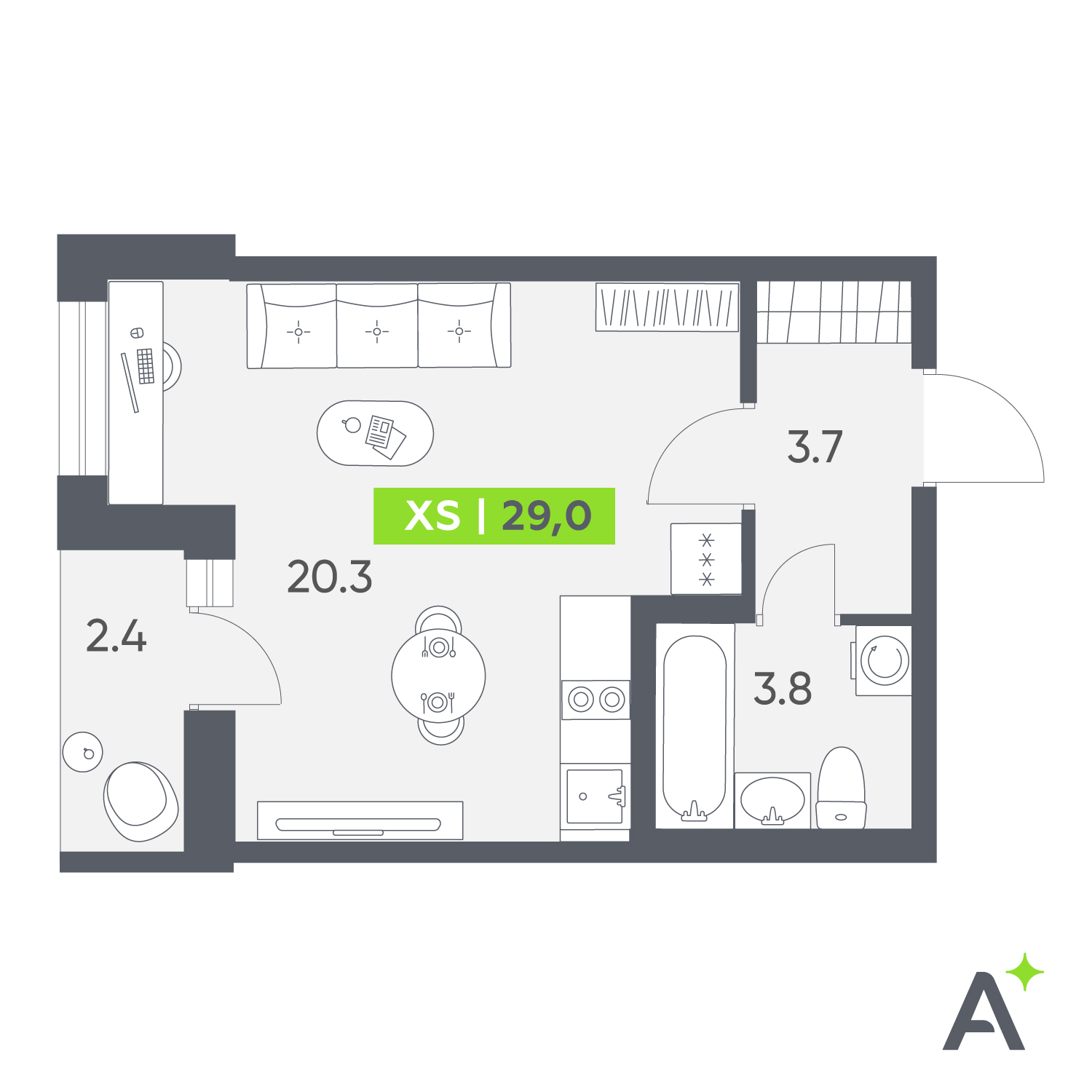 Студия (29м2)