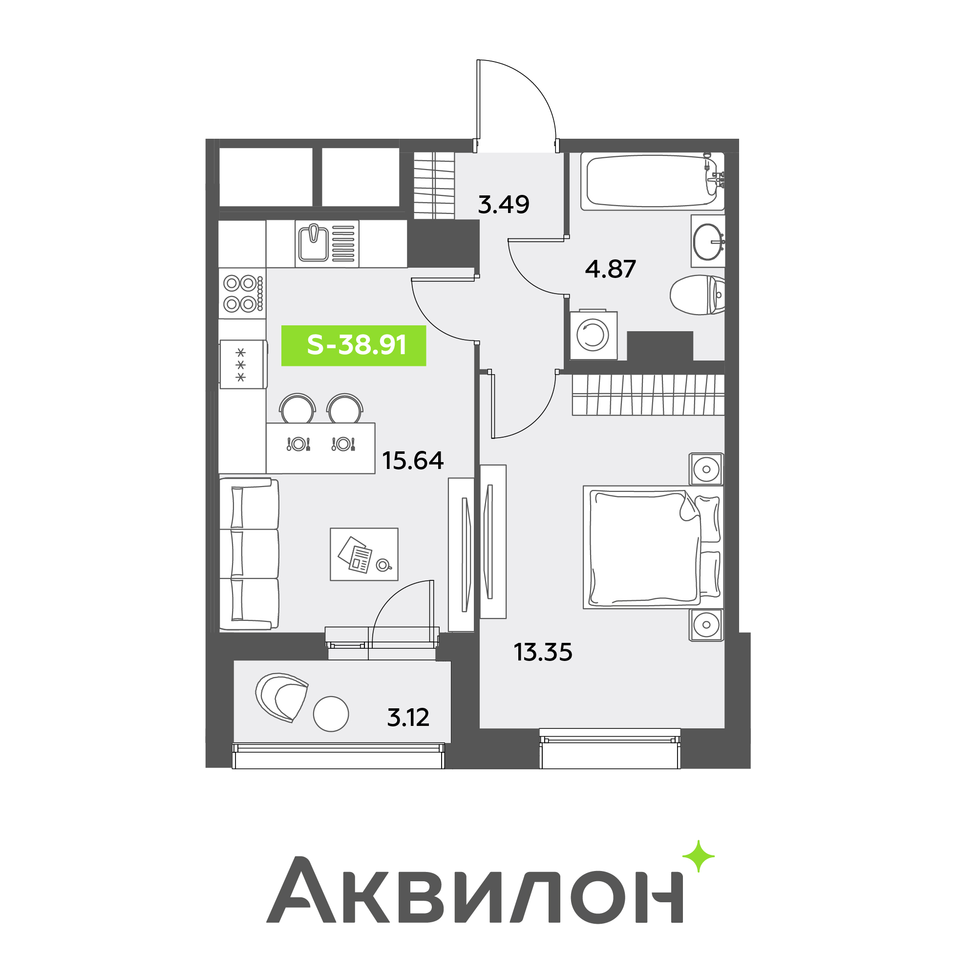 Однокомнатные квартиры в ЖК Аквилон Leaves