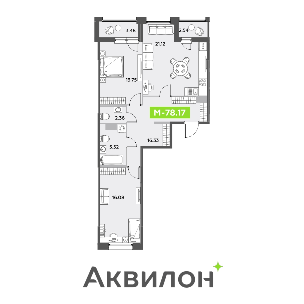 Евро двухкомнатные квартиры в ЖК Аквилон Leaves