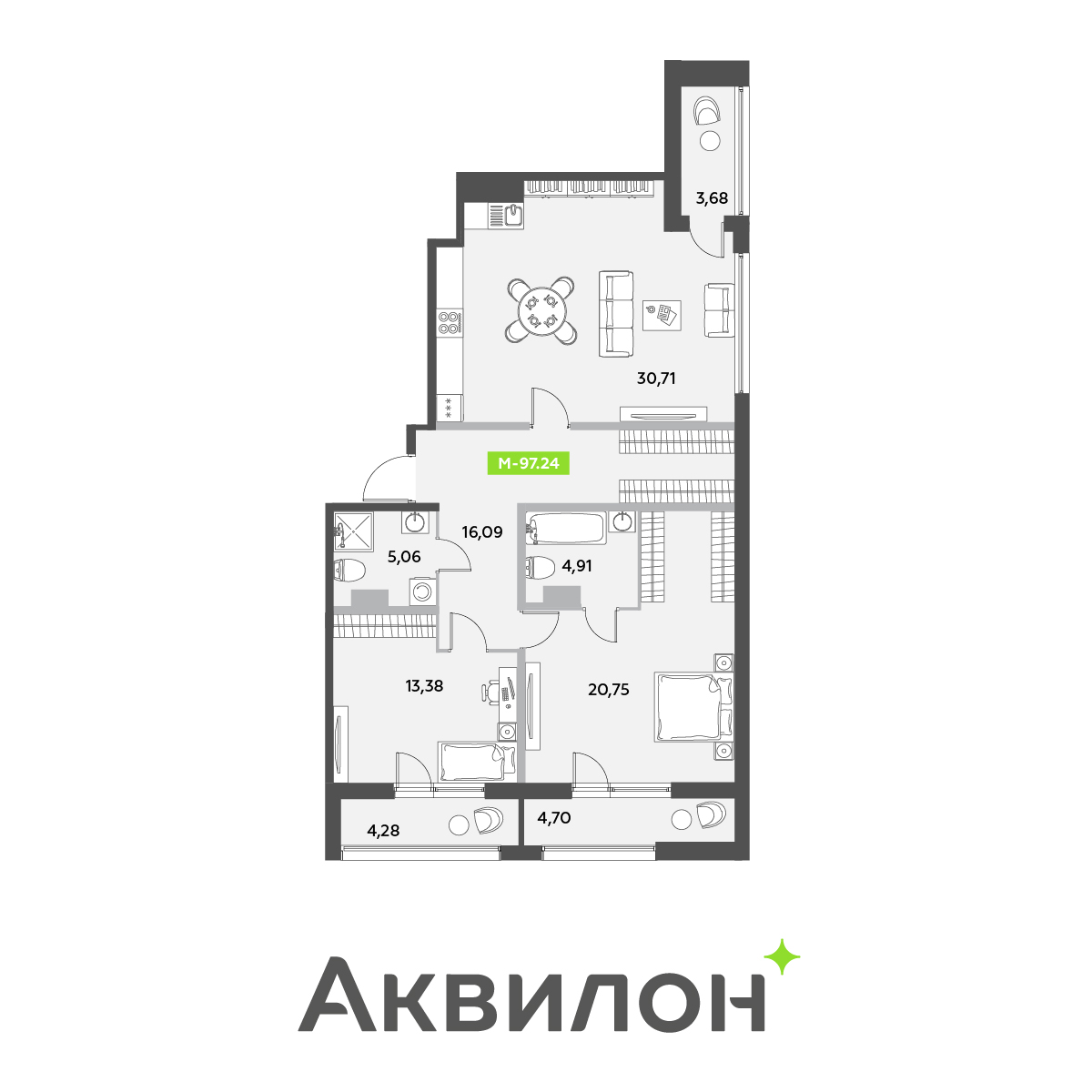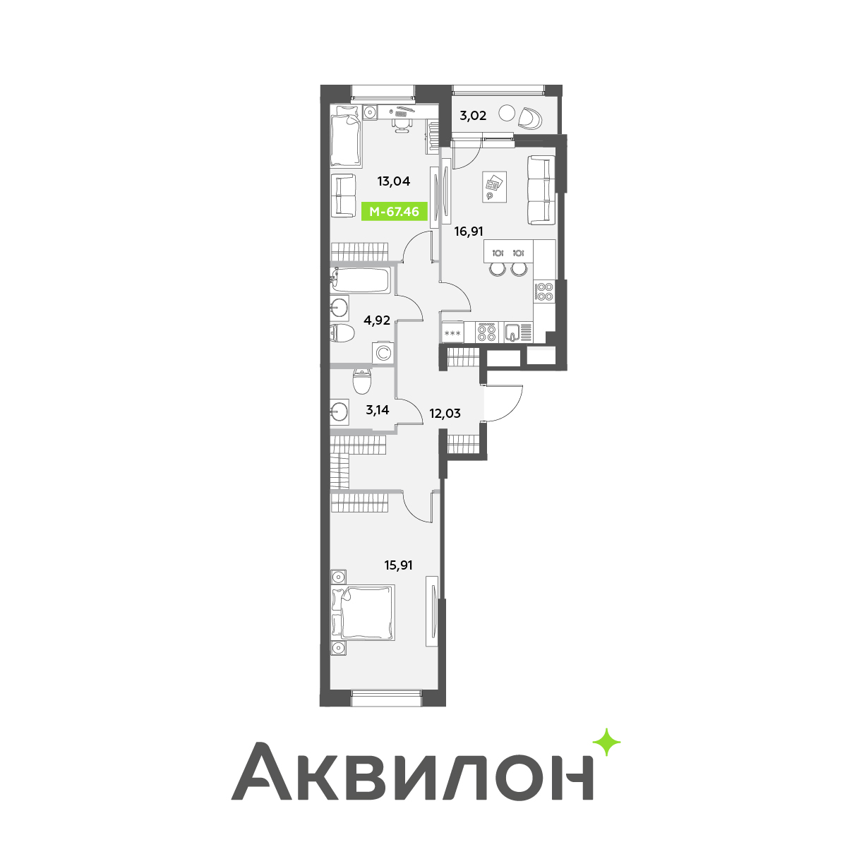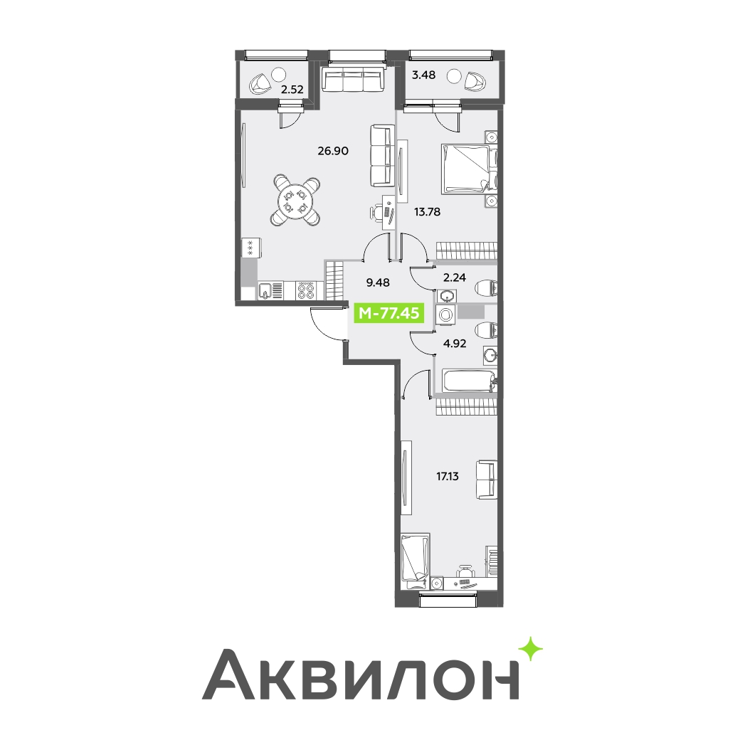 Евро двухкомнатные квартиры в ЖК Аквилон Leaves
