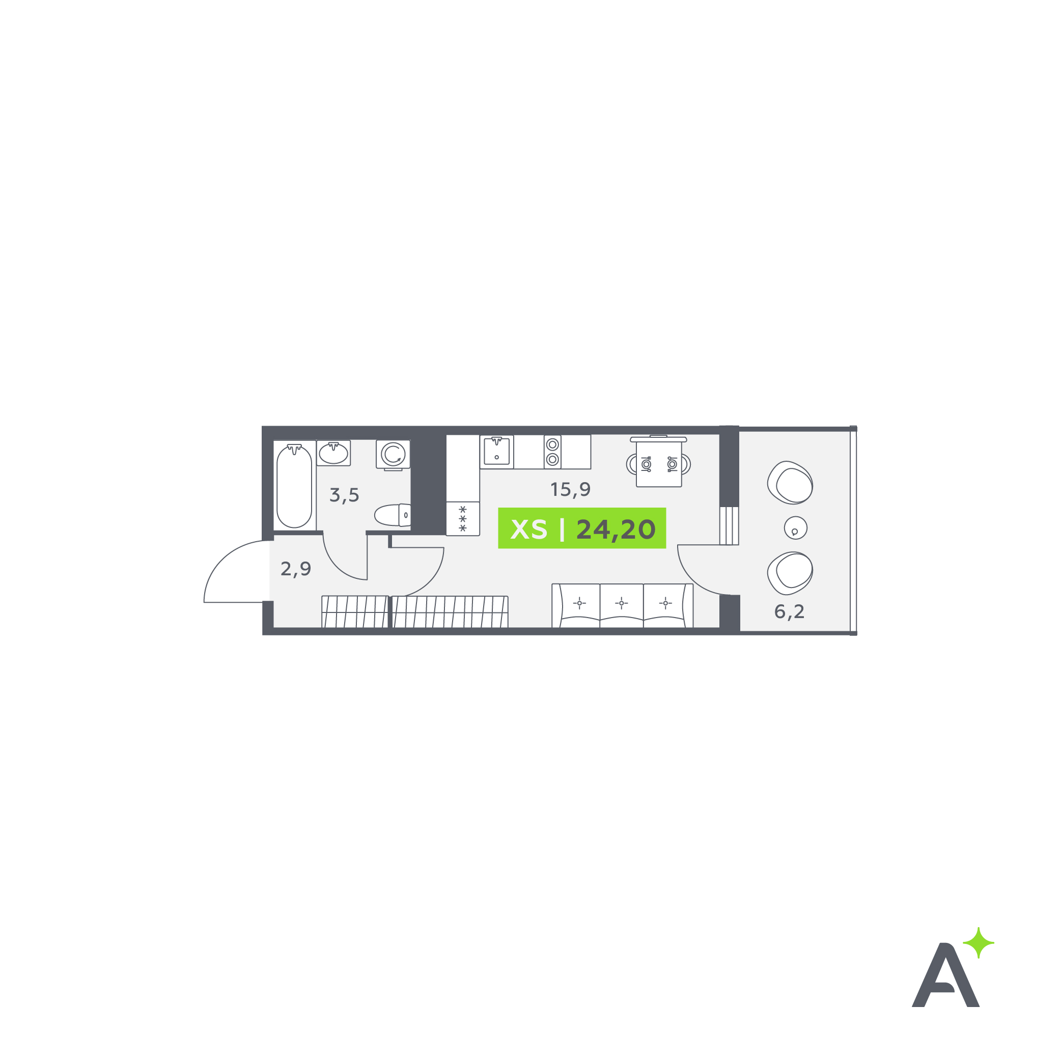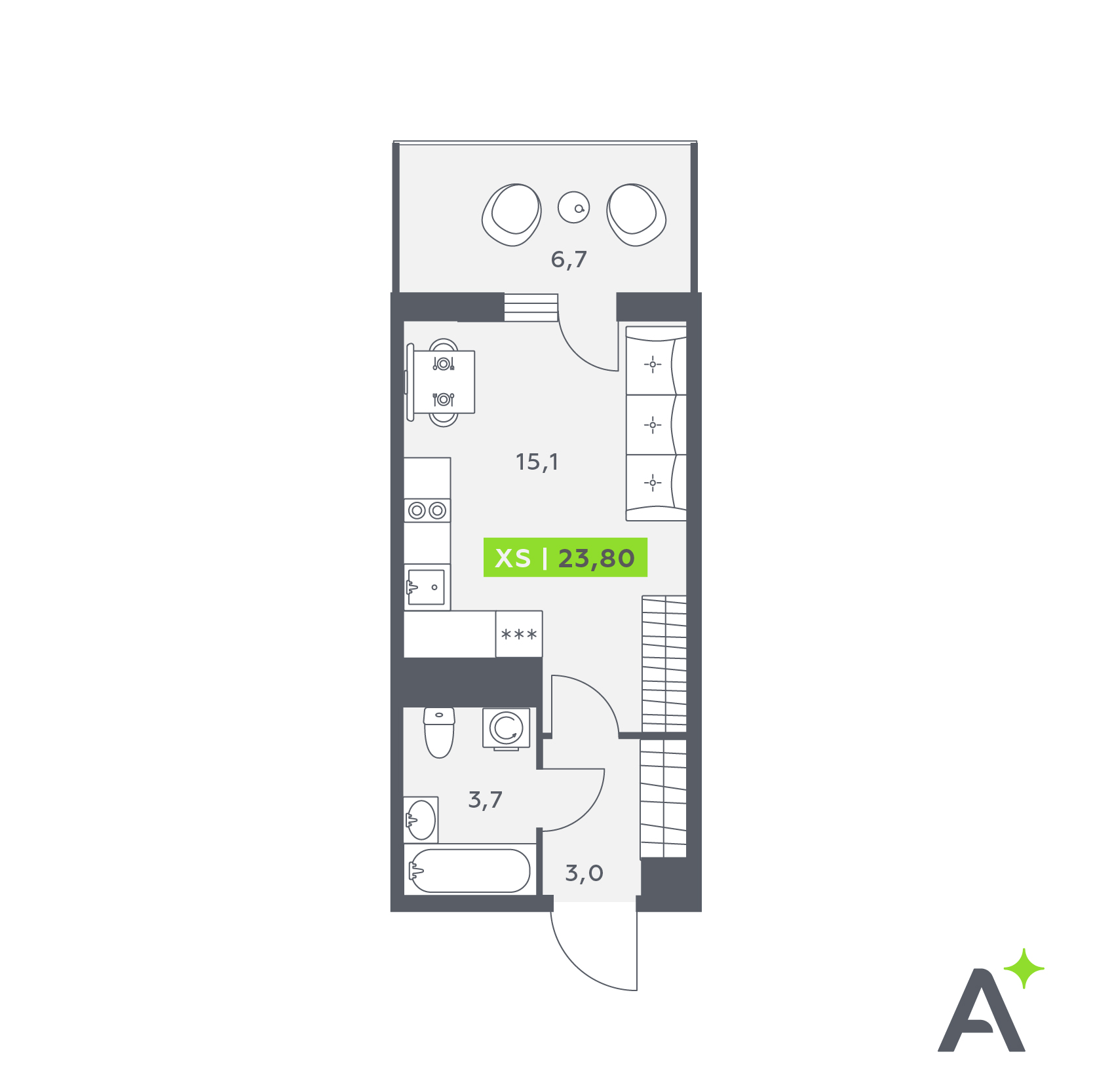 В ЖК Аквилон Stories спроектированы большие балконы глубиной 1,8 м. Площадь и планировка позволяют удобно расставить мебель и оформить балкон, как самостоятельную комнату. Чилл-зона, оранжерея или рабочий кабинет – теперь вы с легкостью сможете реализовать ваши интерьерные задумки.