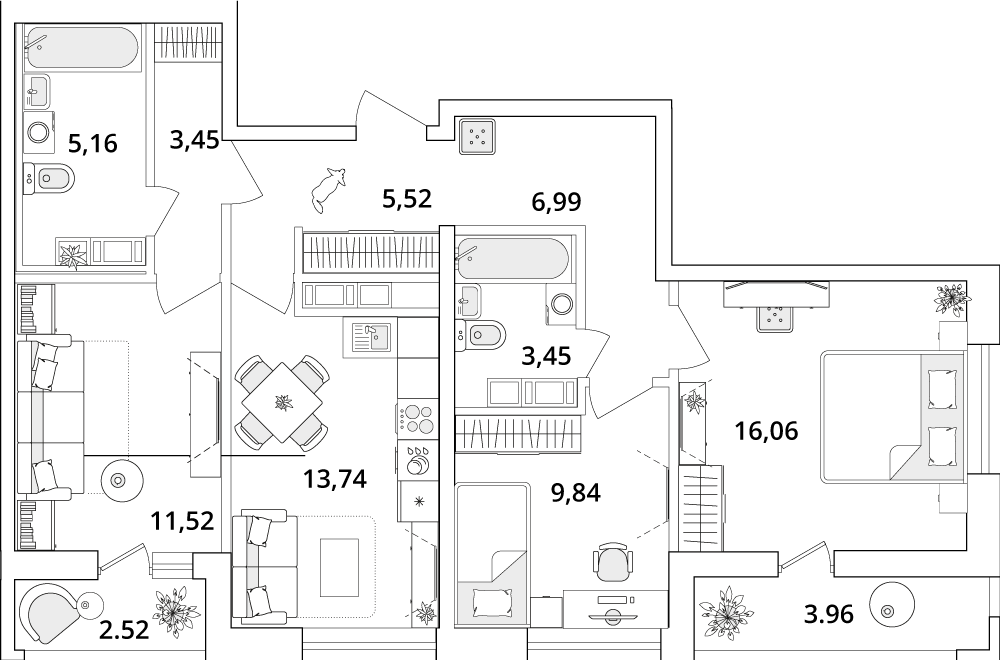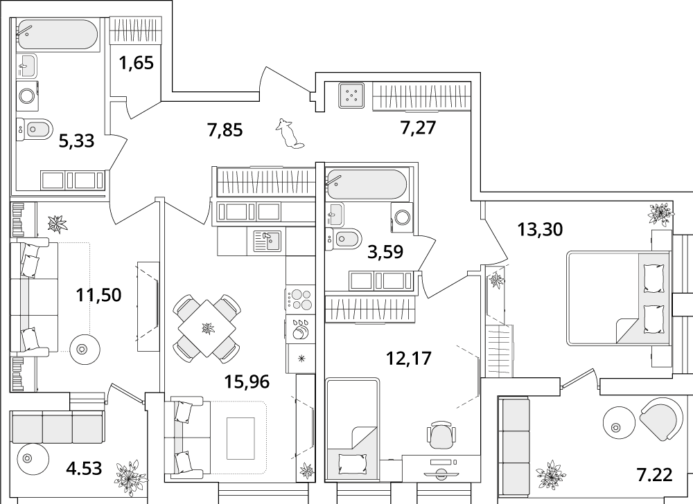 Трехкомнатные квартиры в ЖК Cube (Кьюб)