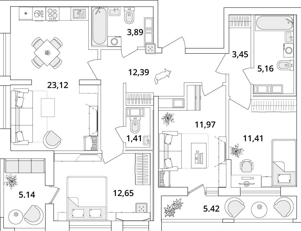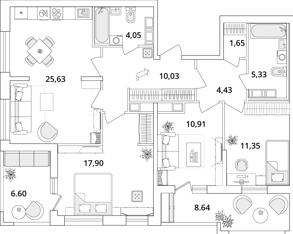 Евро трехкомнатные квартиры в ЖК Cube (Кьюб)