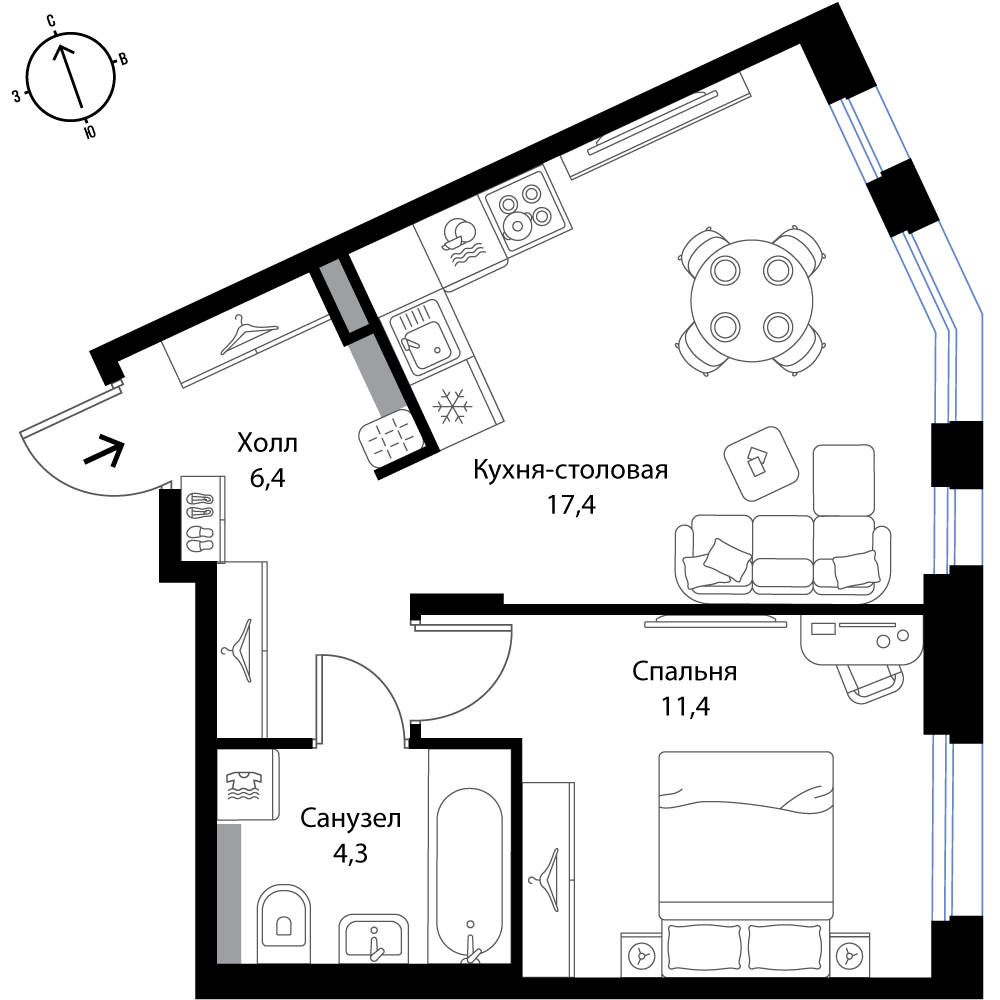 Евро 1-комнатная (39.5м2)