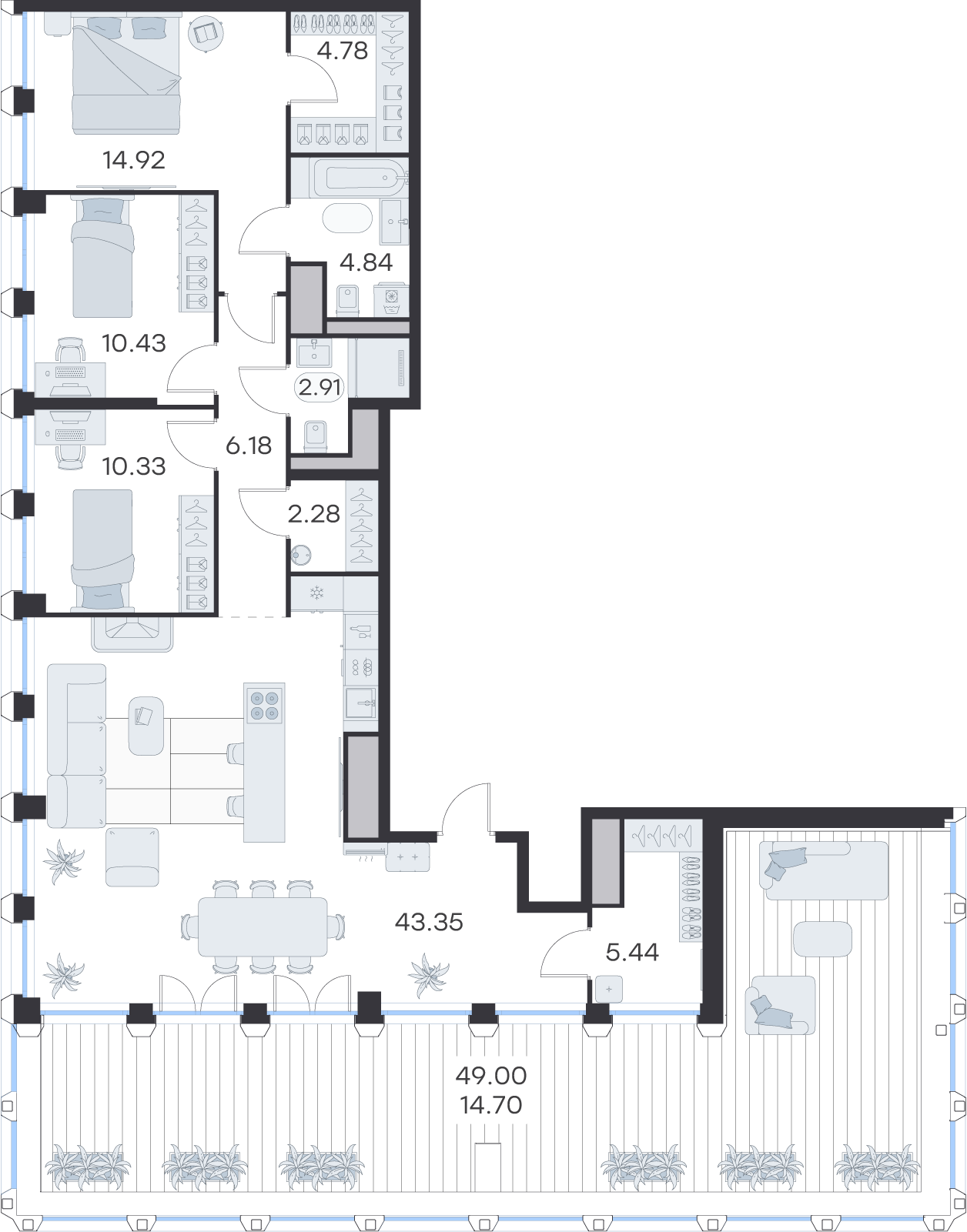 Трехкомнатные квартиры в ЖК GloraX Premium Василеостровский (Глоракс Премиум)