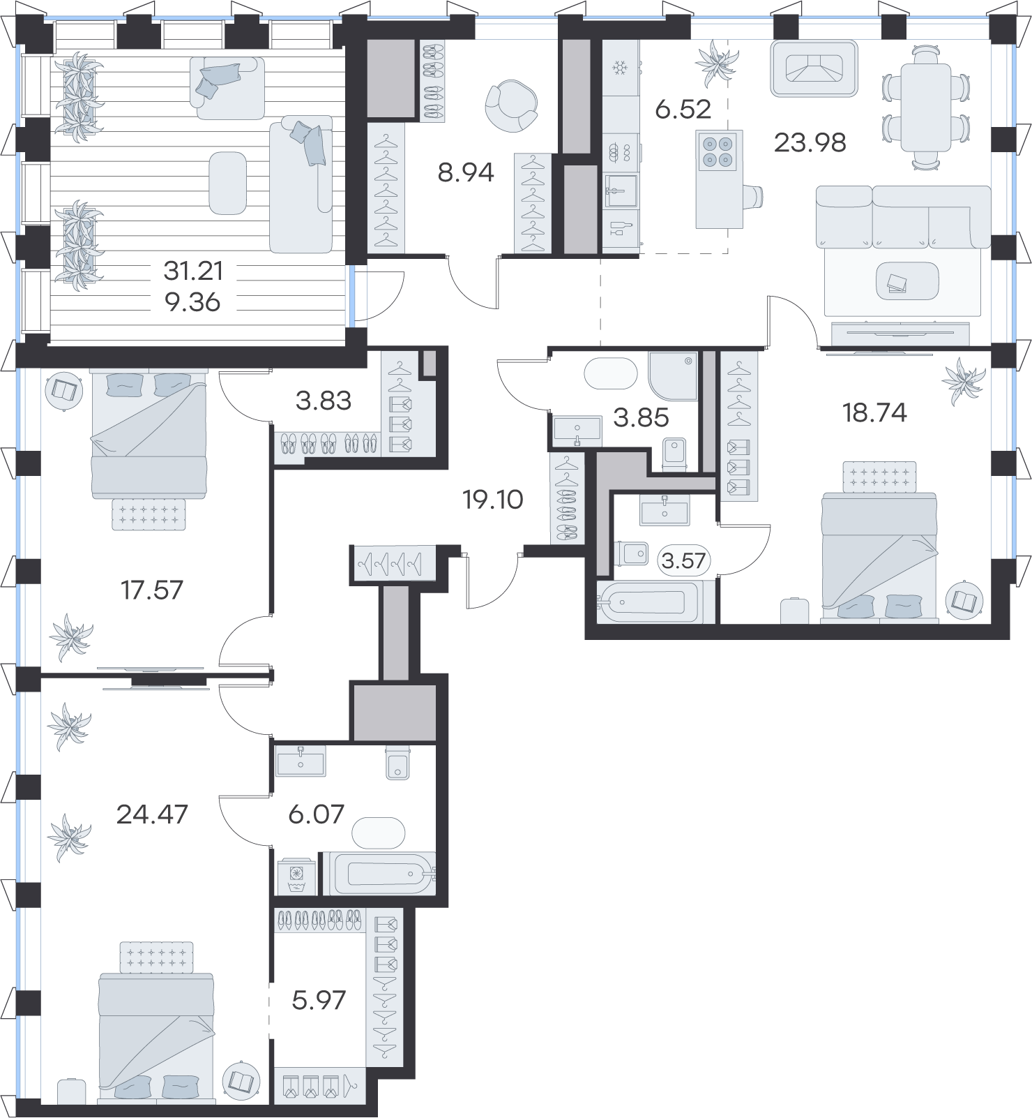 Четырехкомнатные квартиры в ЖК GloraX Premium Василеостровский (Глоракс Премиум)