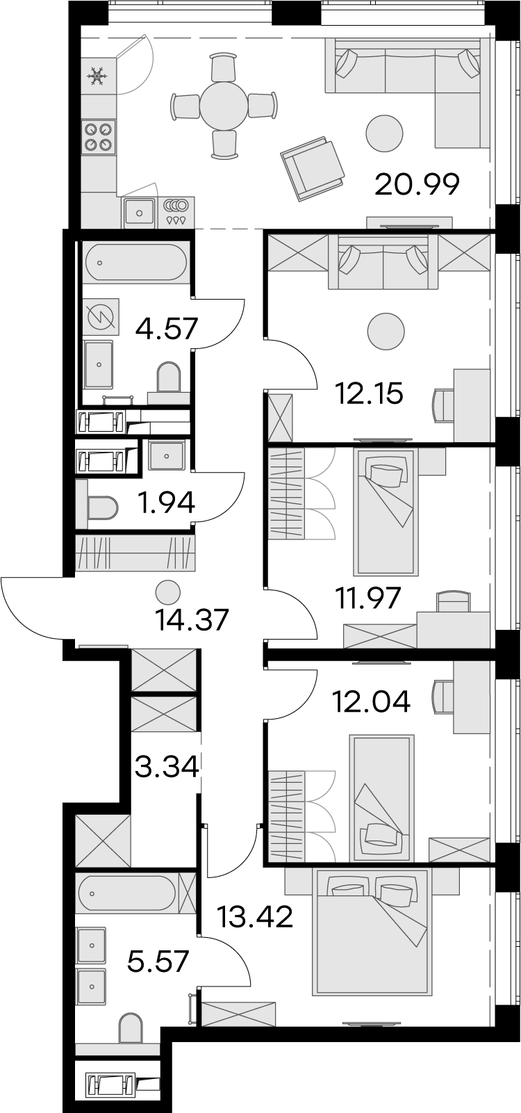 Евро четырехкомнатные квартиры в ЖК GloraX Premium Василеостровский (Глоракс Премиум)