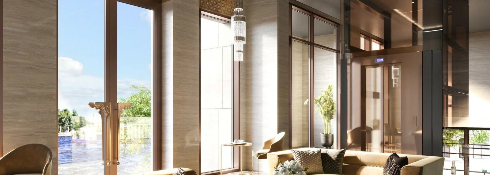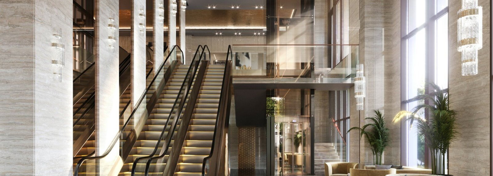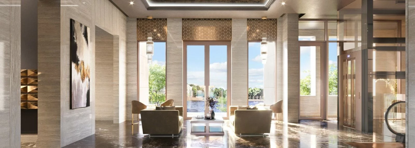 В роскошных интерьерах центральной входной группы гости и жители Империал Клаб будут чувствовать себя особенными. Холлы в жилом комплексе двухуровневые, с эскалатором, дизайнерской мебелью, разноуровневым авторским освещением, лаунж-зоной и панорамными окнами.