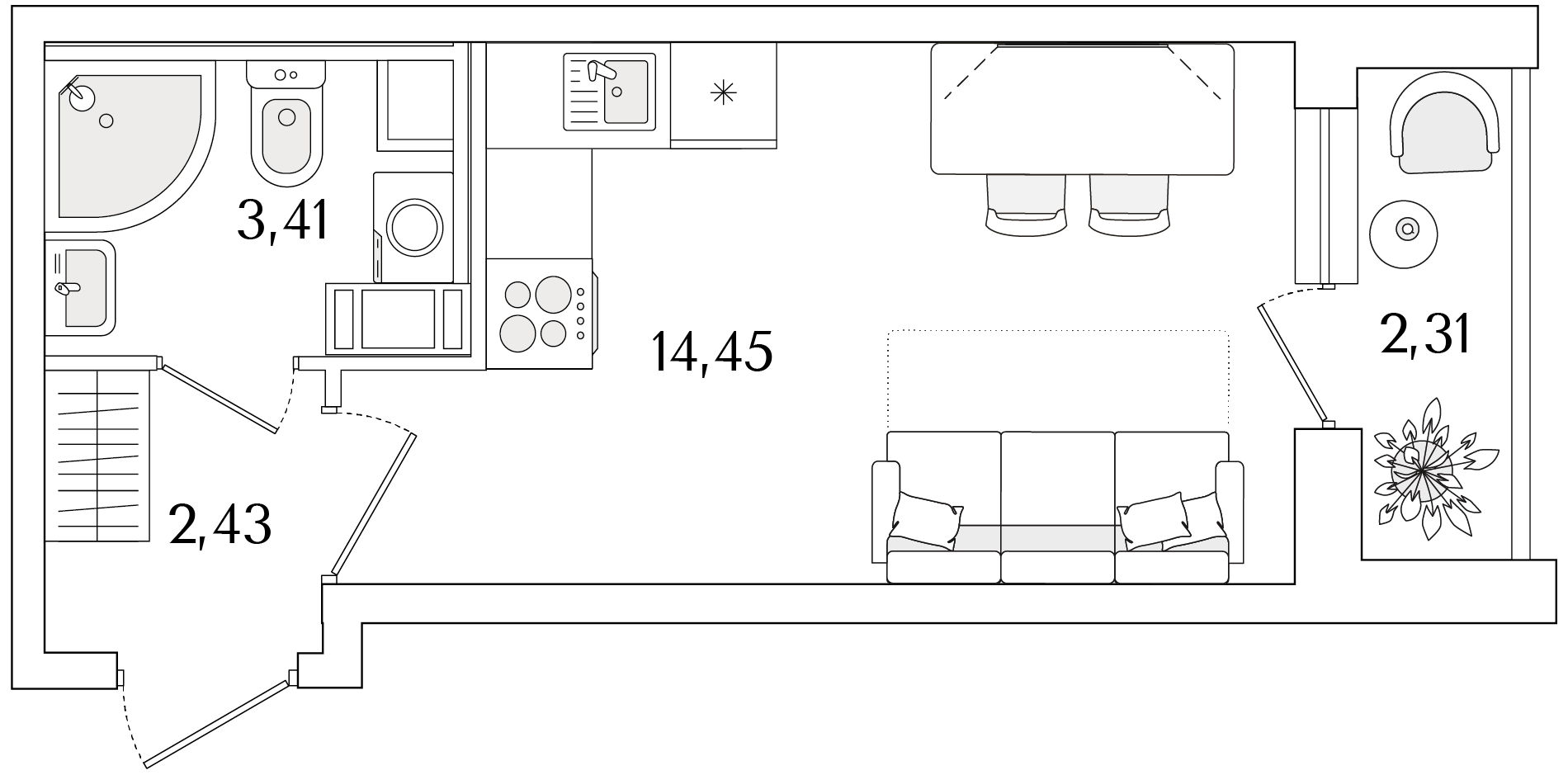 Студия (21.79м2)