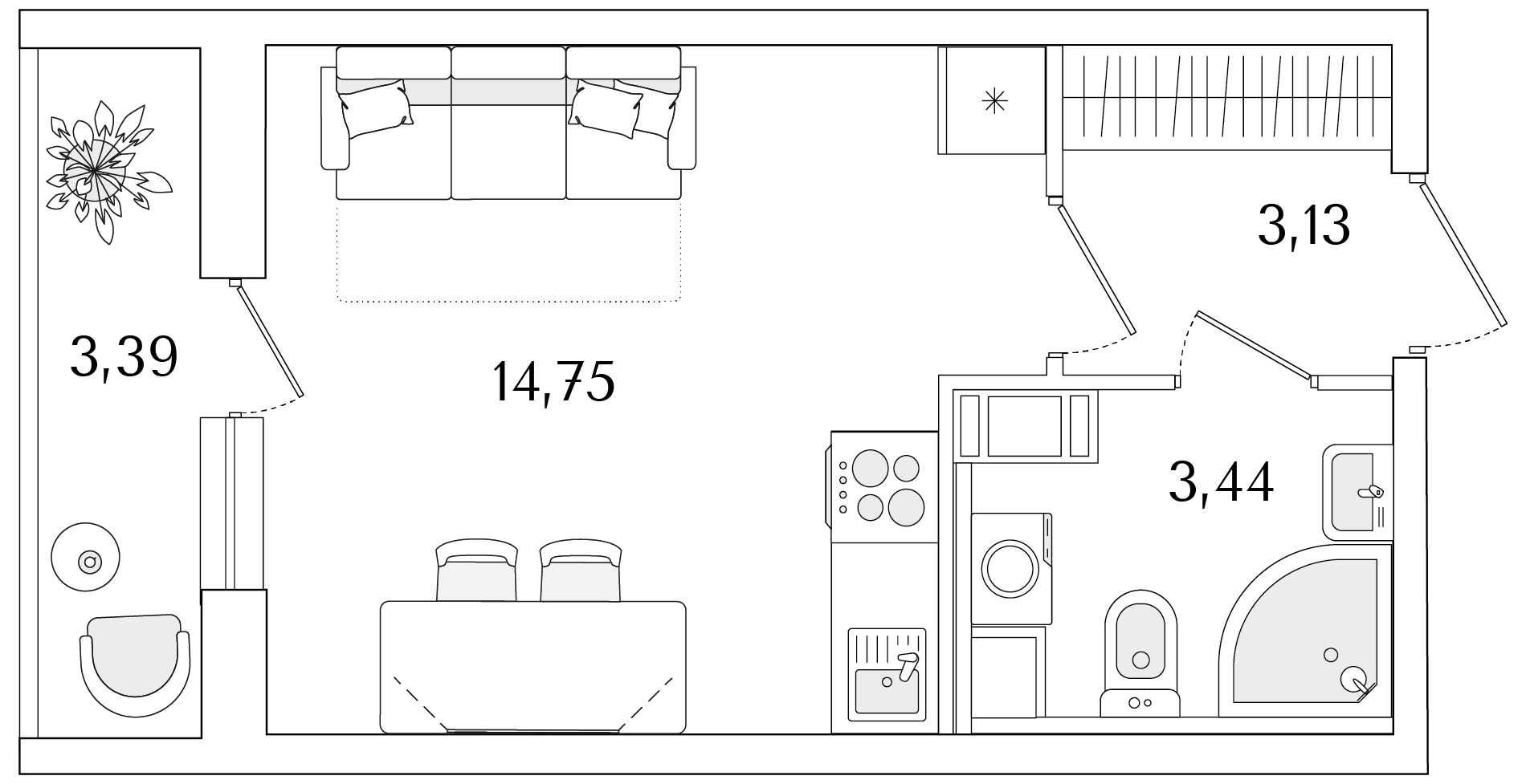 Студия (23.02м2)